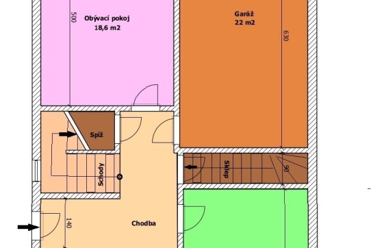 V prvním patře je vstup na prostornou lodžii po celé šíři domu, která zajišťuje příjemné venkovní posezení a dostatek přirozeného světla. Součástí domu je také prostorná garáž a sklep, které nabízí praktické zázemí a úložné prostory.