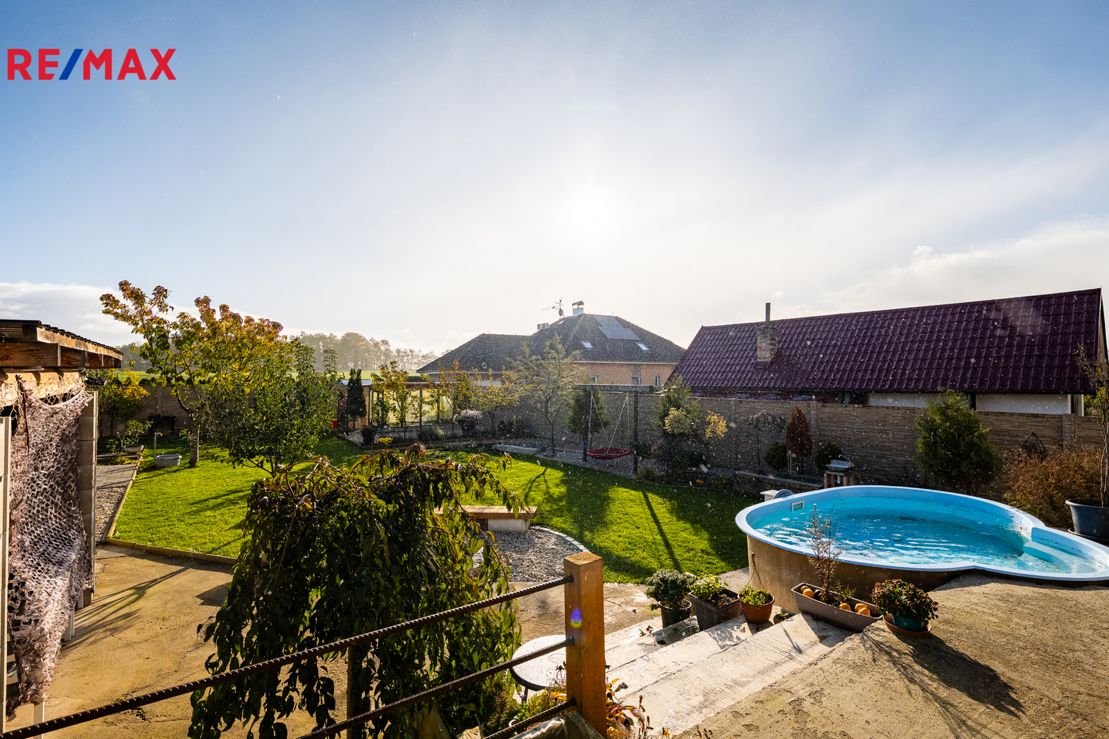 Zahrada dále disponuje bazénem, do kterého se dá skočit přímo z terasy. Letnímu osvěžujícímu koupání tedy vůbec nic nebrání. Pro vášnivé zahradníky jsou k dispozici záhony, které čekají na vaše oblíbené květiny či zeleninu. Nechybí ani skleník nebo výběh pro slepice, což jistě potěší opět děti, které budou moci sbírat Vaše vlastní domácí vajíčka.