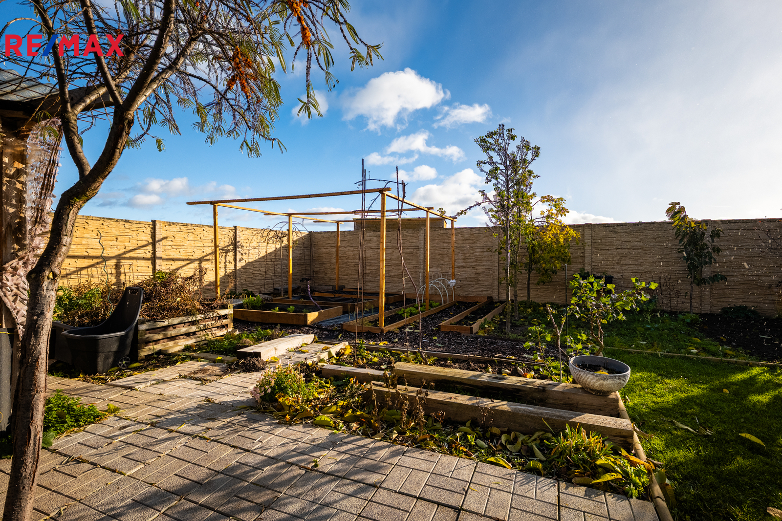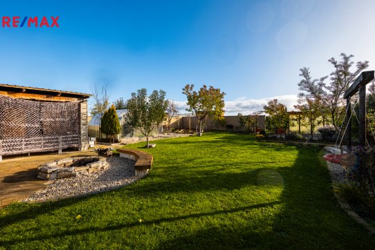 Zahrada je opravdovým skvostem této nemovitosti a poskytuje ideální místo pro rodinné chvíle strávené venku. Oáza zeleně s plochou parcely 925 m² skrývá množství zákoutí, která potěší nejen dospělé, ale i děti. Pro milovníky grilování a venkovního posezení je zde připravena pergola, která skvěle poslouží k pořádání rodinných setkání či přátelských oslav. Vaše děti jistě ocení zahradní ohniště, které láká na večerní opékání špekáčků. Pokud by Vám bylo chladno, nevadí. Stačí jen rozpálit saunu a pořádně se prohřát.