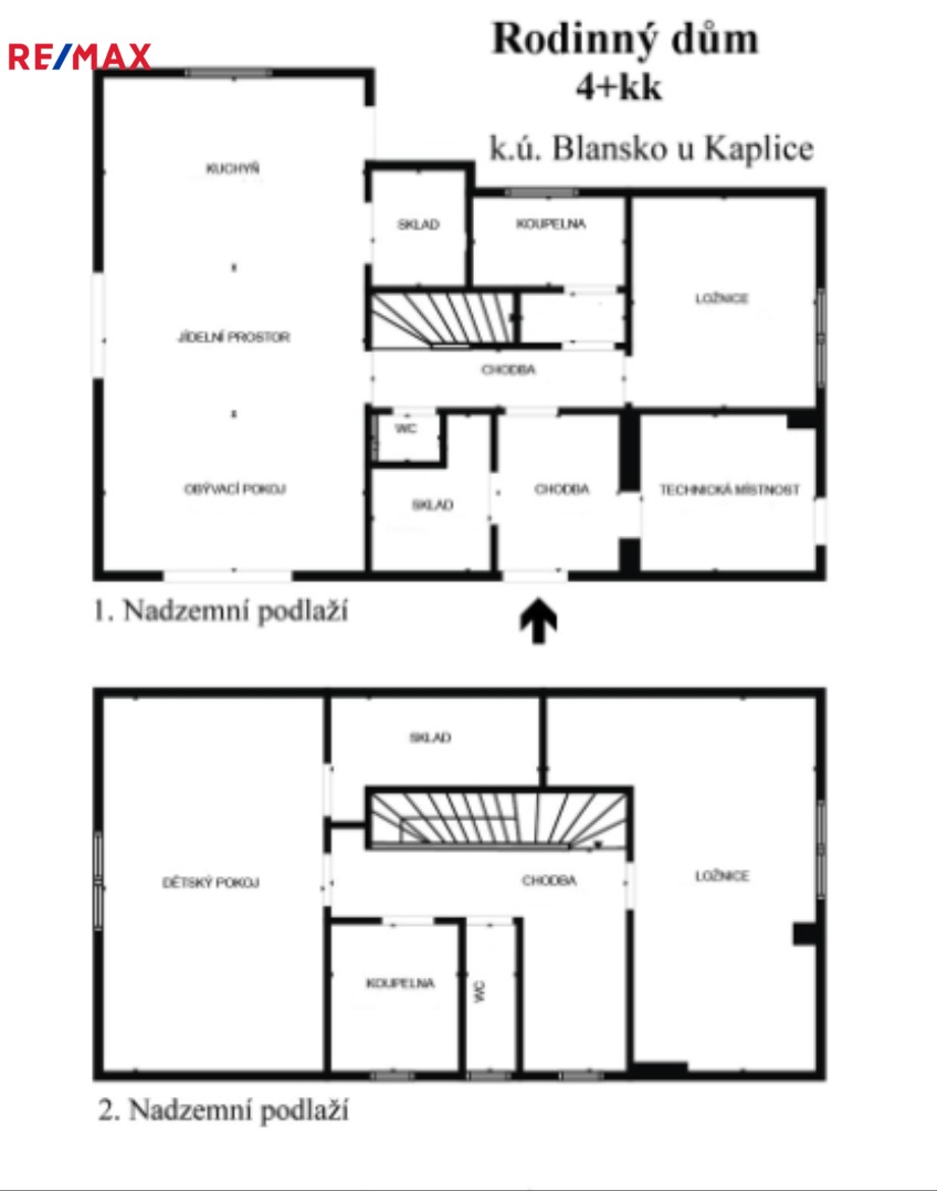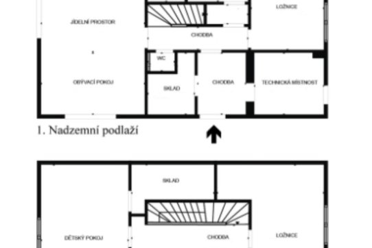 Dispoziční řešení bytové jednotky 4 + kk o užitné ploše 160 m2 se rozprostírá v prvním a druhém nadzemním podlaží. 1.NP se sestává ze vstupního zádveří a chodby 12 m2, kuchyně s jídelním koutem propojené s obývacím pokojem 44 m2, ložnice 13 m2, koupelny 5 m2 s prostorem pro prádelnu, dvou skladů - šaten, WC a technické místností 9 m2. Do 2.NP se vstupuje po dřevěném schodišti a najdeme zde dva prostorné pokoje, koupelnu, WC, sklad či šatnu a pracovní kout. Orientační půdorys jednotlivých místností najdete ve fotodokumentaci.