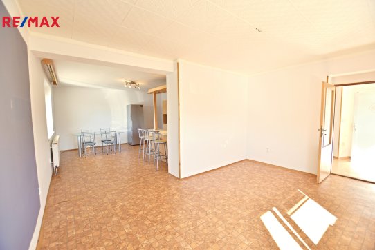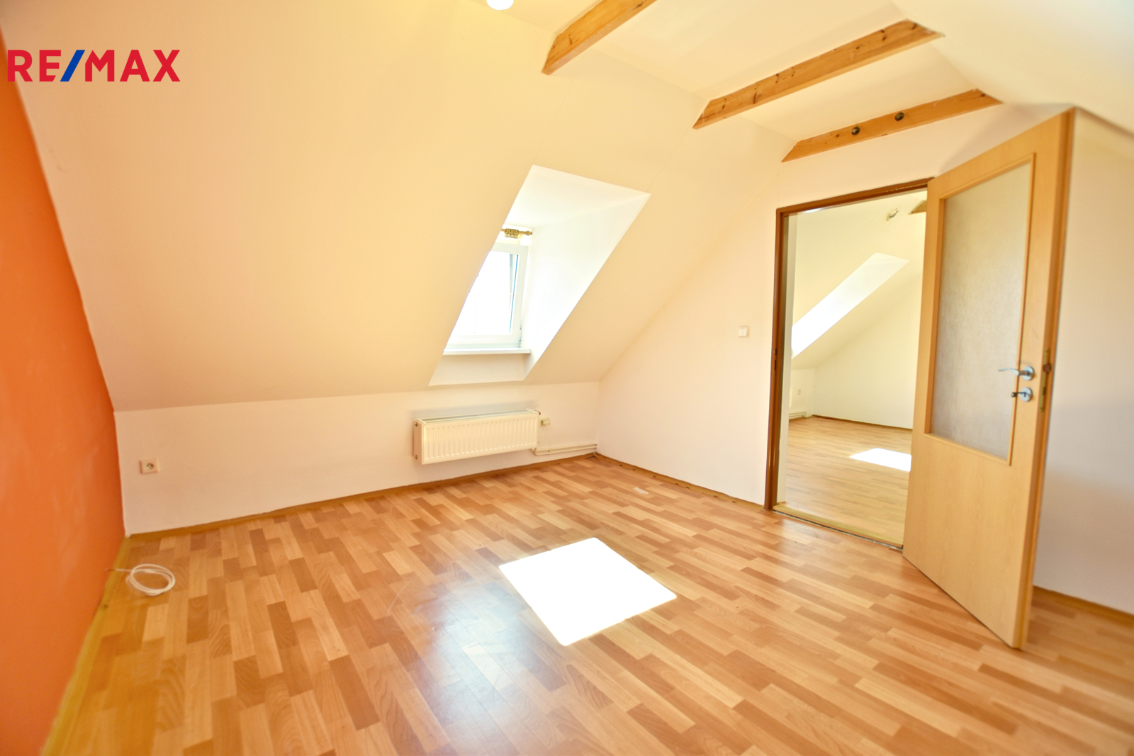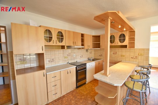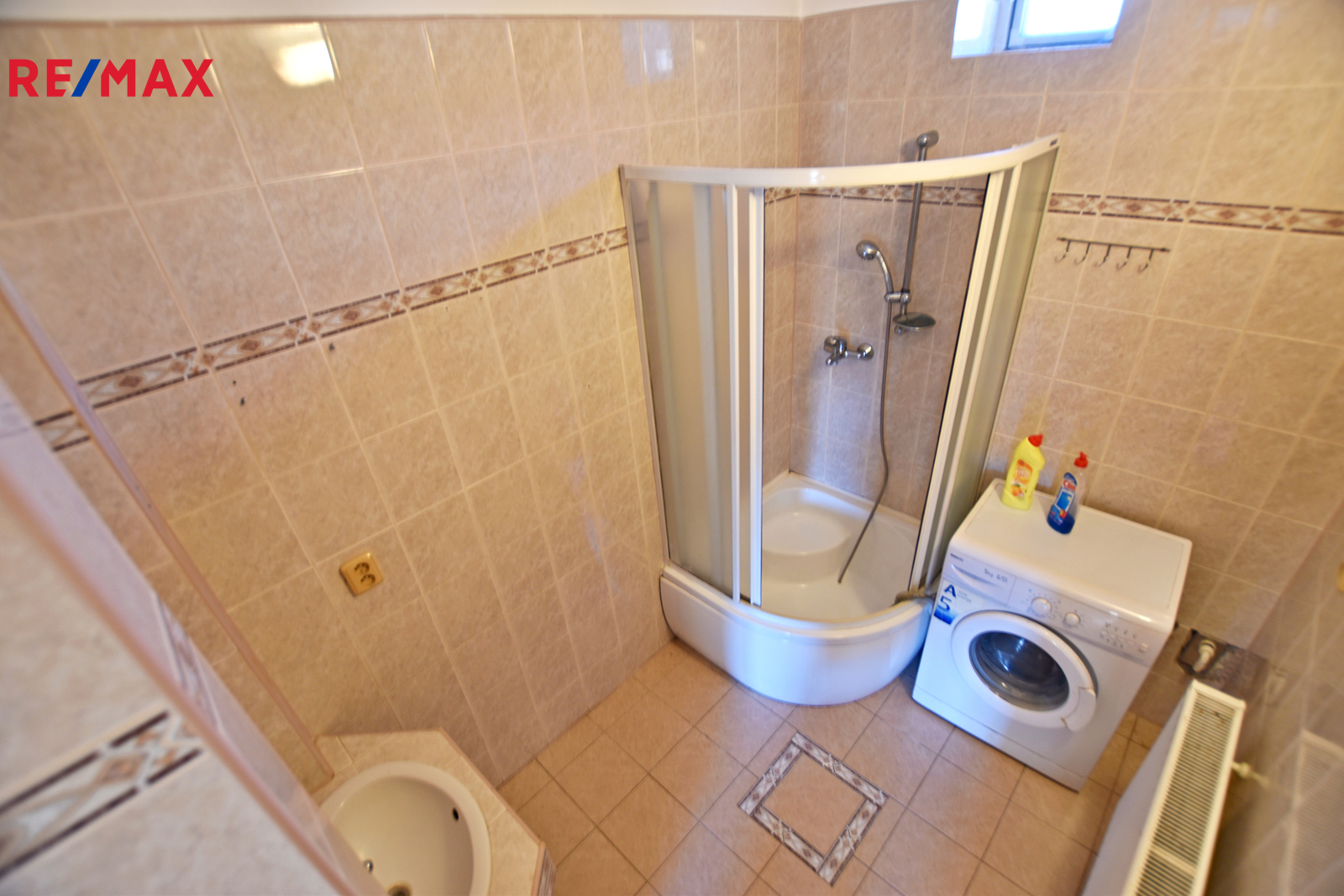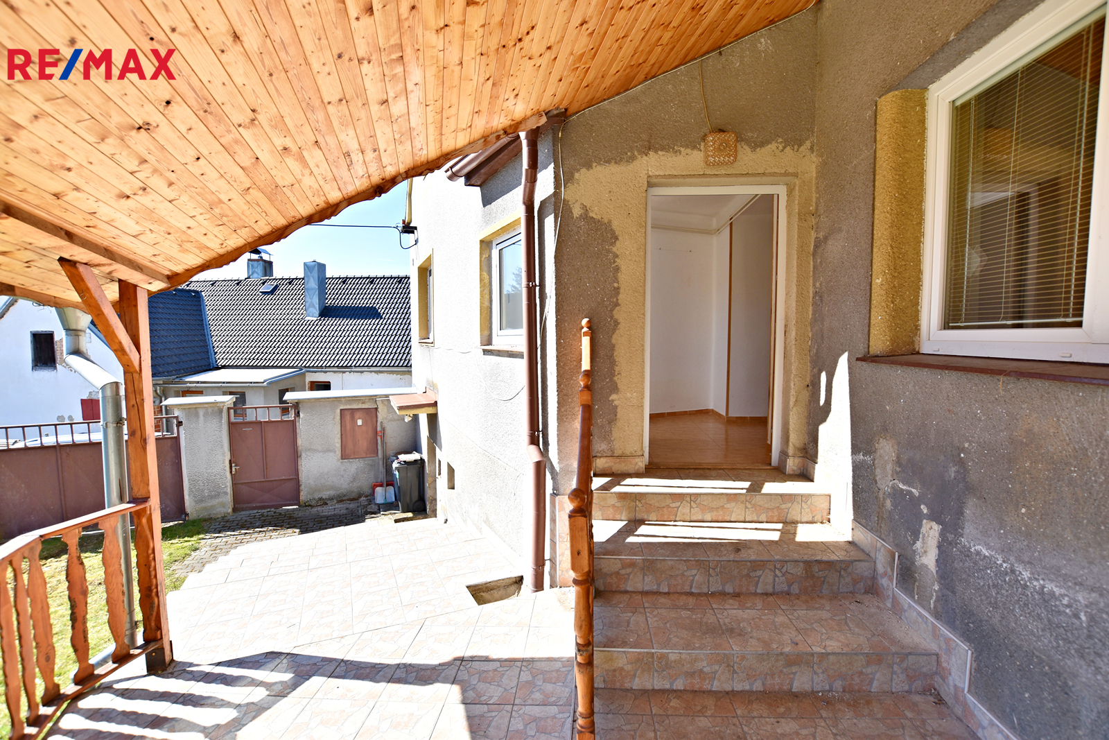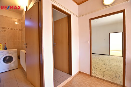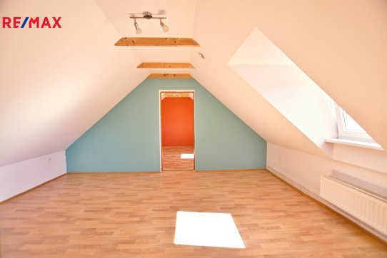 Rodinný dům s dispozicí 5 + kk prošel v minulosti zásadní rekonstrukcí se úpravou dispozic a vybudováním obytného podkroví. V přízemí domu se nachází zádveří s navazující centrální chodbou a vstupy do všech částí. Hlavní obytný prostor (38 m2) na tomto podlaží je tvořen obývacím pokojem s navazující kuchyňskou a jídelní částí. Dále jsou v přízemí 2 samostatné obytné pokoje (každý 20 m2), koupelna se sprchovým koutem, umyvadlem a místem na pračku a samostatné WC. V podkroví domu je prostorná podesta a další 2 pokoje (každý 17,5 m2). Dům je částečně podsklepený – ve sklepě je kotelna a technická místnost.