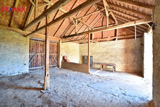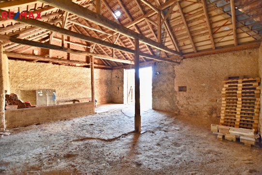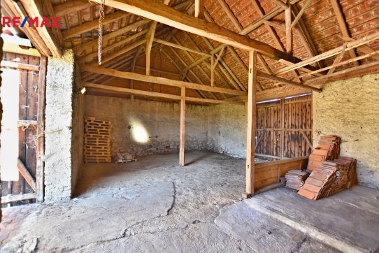 Prostorná průjezdná stodola nabízí dostatek místa jako skladovací prostory, garáž, příp. pro jiné využití (výrobní prostory ...). Za stodolou je zahrada s výměrou 76 m2.