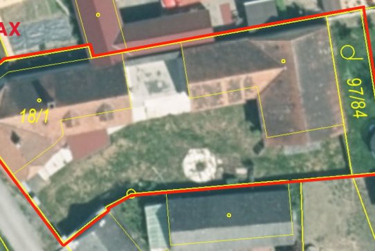 Na pozemku s celkovou výměrou 793 m2 se nachází stavba rodinného domu (zastavěná plocha cca 143 m2), bývalé hospodářské budovy (zast. plocha cca 52 m2) a prostorná stodola (zast. plocha cca 115 ) s průjezdem na zahradu. Zbývající výměru pozemku vyplňuje uzavřený dvůr s navazující plochou pro venkovní posezení a zpevněným místem pro postavení bazénu.