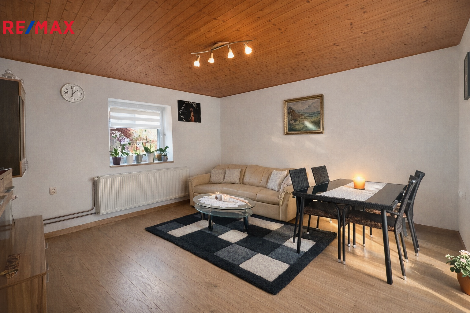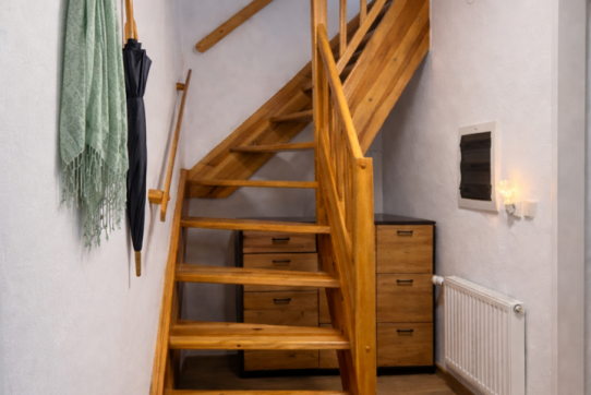 V přízemí se nachází prostorný obývací pokoj s jídelnou a francouzským oknem do zahrady. Kuchyně, koupelna, toaleta a menší vstupní hala.