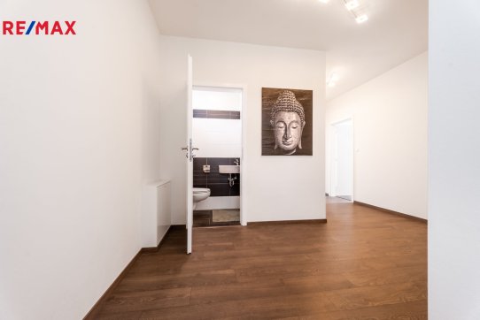 Tato bytová jednotka je v současné době částečně využívána jako kancelář a dispozičně sestává z prostorné vstupní chodby, dvou samostatných pokojů se vstupem na terasu (v jednom příprava na kuchyňskou linku), a koupelny s vanou, umyvadlem a WC. Foto bytu (kanceláře) bude zasláno na vyžádání.