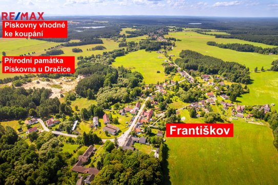 Nabízíme k prodeji výjimečný stavební pozemek o celkové ploše 2 947 m2 nacházejících se na okraji obce Františkov, poblíž Suchdola nad Lužnicí, v krásné lokalitě Třeboňska, známé svými malebnými lesy, rybníky a cyklostezkami. Územním plánem je část pozemku cca 1200 m2 určena pro bydlení v souladu s okolní zástavbou, povoleno je 1.NP + podkroví.