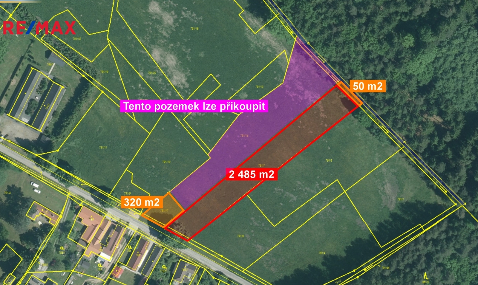Další velkou výhodou je, že se stanete nejen výlučným vlastníkem pozemku 2 485 m2, ale zdarma dostanete podíl ve výši 1/2 na dalších dvou pozemcích 320 m2 (parc. číslo 791/17 a 1001/11) a pozemku (parc. č. 791/39), který zajišťuje pohodlný přístup k vašemu pozemku z komunikace a v zadní části k lesu za pozemkem. Náhledy všech pozemků najdete ve fotogalerii.