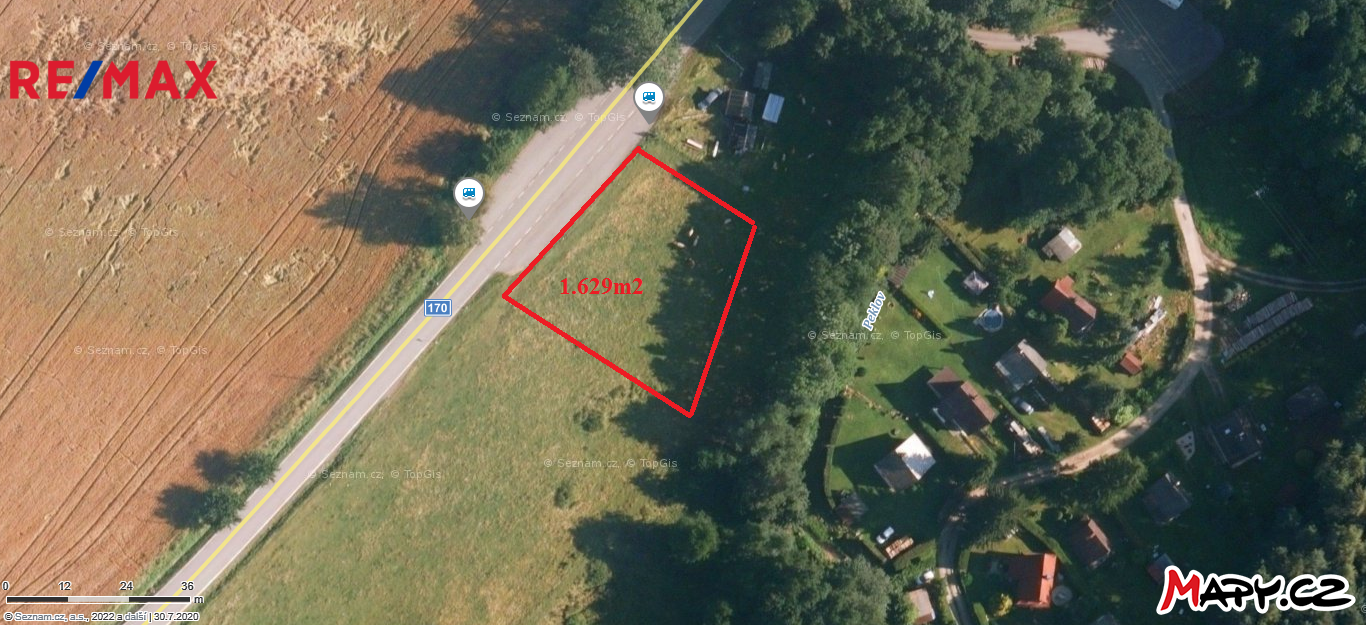 a nachází se na rovině bezprostředně u hlavní silnice ve směru na Vacov (a dále na Šumavu). Podle územního plánu je pozemek vhodný pro výstavbu objektu pro obchodní prodej, sport, ubytování, stravování, zdravotnická, nákupní a zábavní střediska, ostatní podnikání a služby. Zastavitelnost plochy 40% pro objekty (+ parkoviště, hřiště, bazény). Na hranici pozemku je pilíř pro připojení elektriky, voda možná ze studny nebo z vrtu. U pozemku je na komunikaci zastávka BUS (vhodná např. pro zaměstnance nebo klienty podle druhu využití objektu). Sousední chatová oblast má vlastní trafostanici, koupaliště. Vhodná investice do budoucna koupí pozemku samotného nebo šance realizovat vlastní podnikatelský záměr.