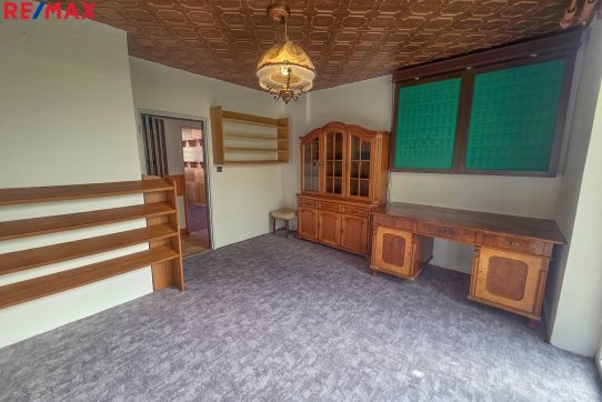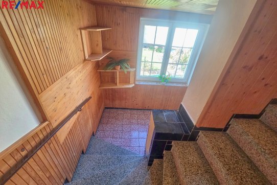 V přízemí rodinného domu se nachází předsíň (9 m2) ze které se vchází do bytu v přízemí o dispozici 3+1; na schodiště k druhému bytu v patře nebo do suterénu domu.