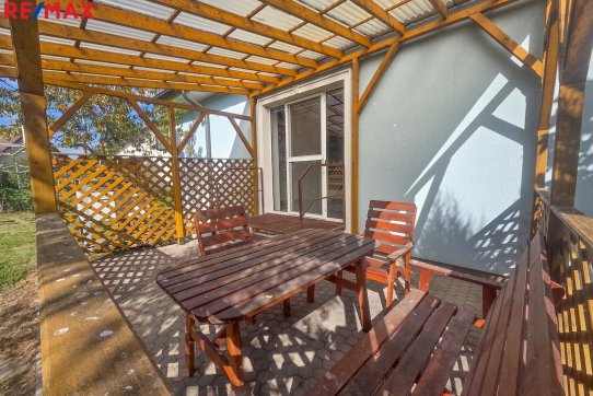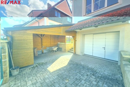 Před domem vedle garáže je vybudován dřevěný přístřešek. V zadní části zahrady je zděný zahradní domek (8 m2).