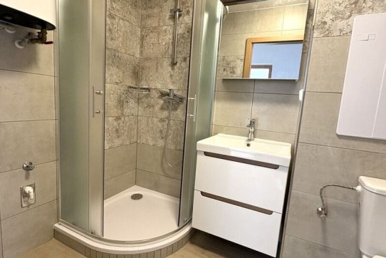 Exkluzivně nabízíme k pronájmu byt 3+1 s balkonem ve zděném bytovém domě nyní po kompletní rekonstrukci. Byt 3+1 nabízí kuchyň s prostorem pro jídelní stůl, obývací pokoj s východem na balkon a výhledem do krajiny a dále 2x samostatné pokoje, koupelnu se sprchovým koutem, umyvadlem a toaletou. Vstupní chodba je prostorná vhodná na umístění úložné skříně. Bytová jednotka se nachází ve 2.NP domu bez výtahu a dům disponuje celkem šesti byty. K bytu přináleží 2 sklepní kóje a skladový prostor v podílu 1/6 v přízemí domu. Bytový dům je v sousedství Domu pro seniory Stachy - Kůsov a je společně s ním napojen na vodu ze studny. Kanalizace řešena jímkou a vývoz se financuje z FO. Teplá voda z bojleru a vytápění řešeno elektrickým kotlem do ústředního topení. Parkování možné přímo před domem. Na okolním pozemku je možné mít zahrádku jako i některé bytové jednotky.