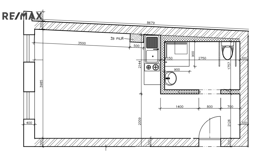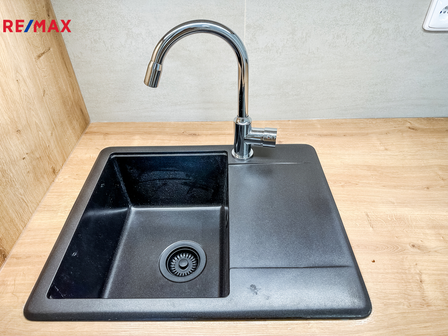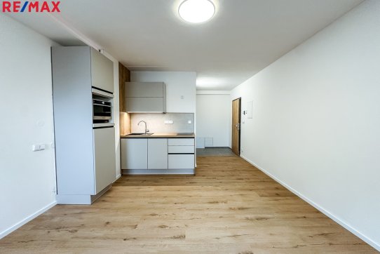 Dispozice bytu je prakticky řešena. Vstupními dveřmi vejdete do hlavního obytného prostoru s kuchyňským koutem, který nabízí dostatek místa pro jídelní stůl i obývací část. Díky velkému oknu je interiér příjemně světlý a vzdušný. Koupelna je moderně vybavena sprchovým koutem s luxusní hlavovou sprchou Grohe Rainshower s přídavnou masážní tryskou, umyvadlem a toaletou. Ohřev vody zajišťuje úsporný bojler s funkcí optimalizace spotřeby.