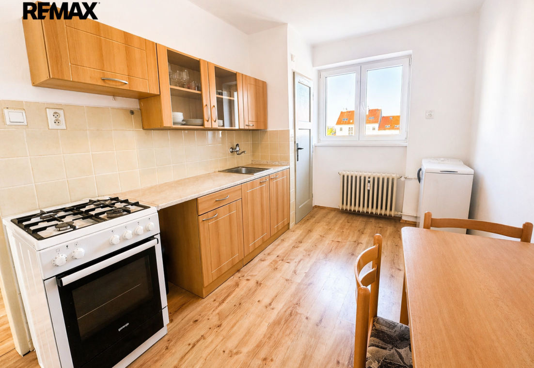 Byt prošel částečnou rekonstrukcí, je udržovaný a je orientovaný na dvě světové strany, díky čemuž nabízí příjemný výhled do zeleně – na jedné straně do klidného vnitrobloku, na druhé směrem k parku. Lokalita tak zajišťuje tiché bydlení bez rušivého hluku z ulice.
