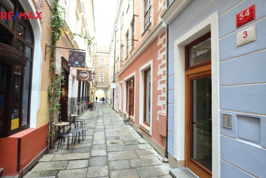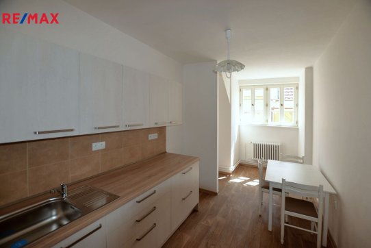 Exkluzivně nabízíme k dlouhodobému pronájmu prostorný a útulný byt 2+1 v historickém centru Českých Budějovic. Byt s celkovou podlahovou plochou 70,4 m2 se nachází v Plachého ulici, uličce ústící do náměstí Přemysla Otakara II., v místě s neopakovatelnou atmosférou i historií. Byt je umístěn ve 3. patře historického domu, nabízí kombinaci historie a moderního bydlení v centru města. Dům je nemovitou kulturní památkou, nachází se zde 6 bytových jednotek, v přízemí domu vstupní část a společné prostory nájemníků (kolárna) + komerční prostory, 2 obchody se samostatnými vstupy z ulice. V ulici najdete další drobné obchůdky, např. starožitnictví nebo vyhlášenou kavárničku s venkovním posezením. Byt 2+1 má ideální dispozici pro bydlení, oba pokoje mají samostatné vstupy z prostorné haly, do kuchyně je přístup z obývacího pokoje. Kuchyně s podlahovou plochou 10,7 m2 nabízí dostatek prostoru pro stolování, umístění lednice, která není součástí nové kuchyňské linky. Kuchyně má přirozené větrání a osvětlení oknem. Kuchyňská linka je vybavena varnou deskou a elektrickou troubou, instalována je digestoř s odtahem. Kuchyňská okna jsou orientována do Plachého ulice. Podlahová plocha pokojů je 21,8 a 12,7 m2, okna s orientací východní, ložnice je se střešním oknem. Všechny obytné místnosti mají jednotnou podlahovou krytinu, kterou je lepený vinyl. Koupelna velikosti 4,5 m2 je vybavena novou vanou, umyvadlovou skříňkou se zrcadlem a topným žebříkem, jsou provedeny nové dlažby a obklady. WC není součástí koupelny, má samostatný vstup z chodby a okno pro přirozené větrání. Vytápění bytu je ústřední etážové s plynovým kotlem Junkers umístěným v předsíni bytu, odkouření do komína. Kotel zajišťuje také ohřev vody. Byt je částečně zařízený - vestavěné skříně v hala a ložnici, jídelní stůl a židle.