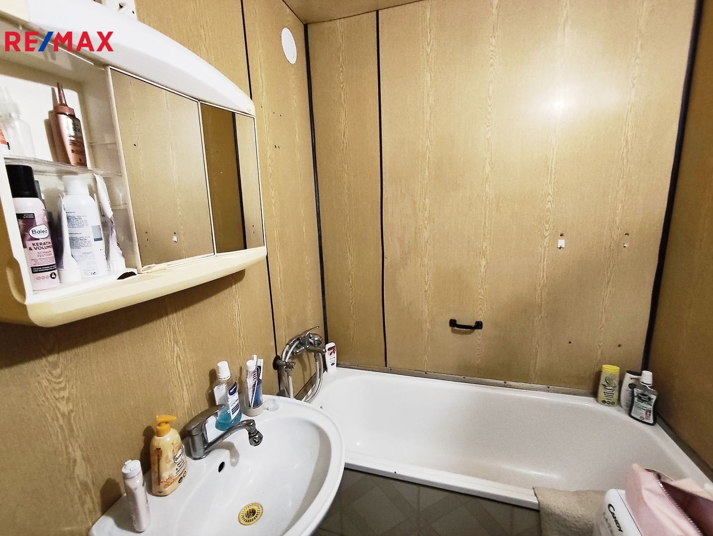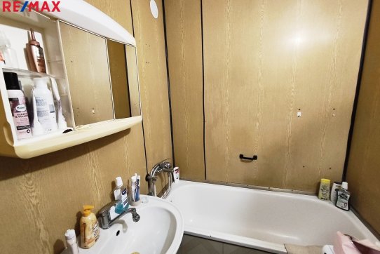 Koupelna: vana, umyvadlo, přípojné místo na automatickou pračku.