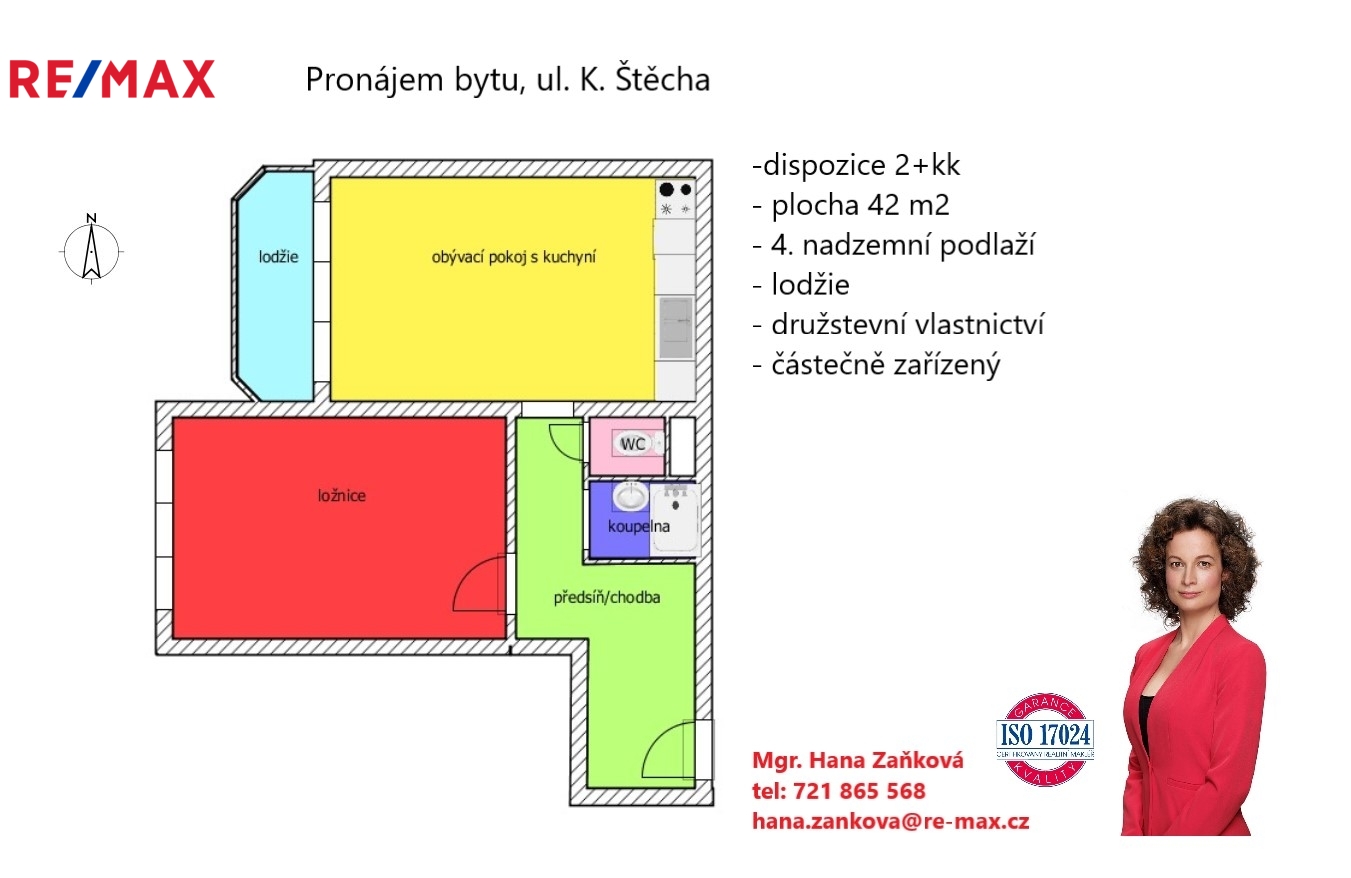 Pronájem bytu 2+kk, 42 m², ul. K. Štěcha – České Budějovice, Máj