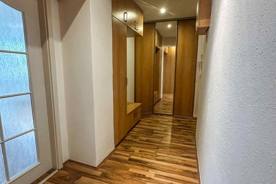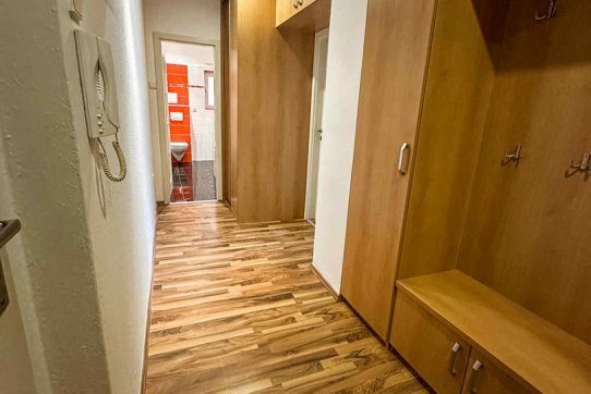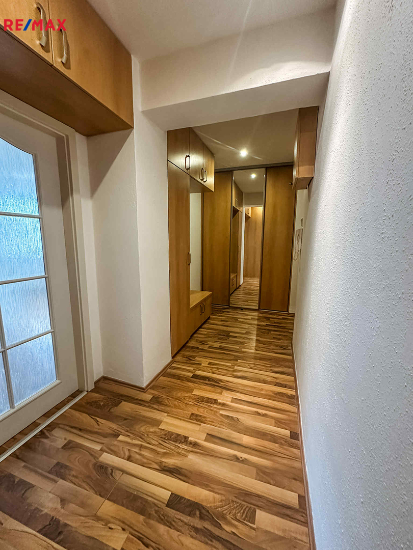 Dispozice bytu: prostorná vstupní chodba s vestavěnou skříní, koupelna s WC, ložnice a obývací pokoj s vybaveným kuchyňským koutem. K bytu náleží sklepní kóje.