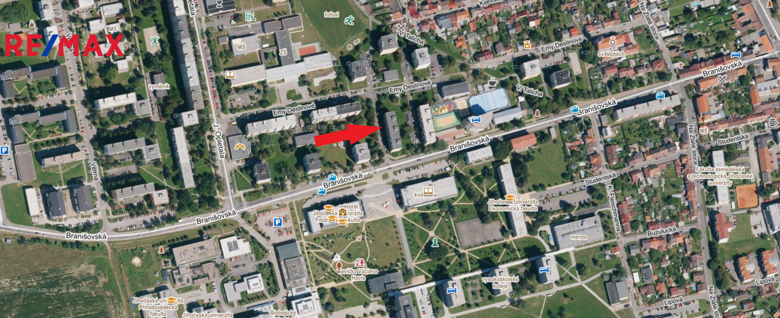 Hlavní předností bytu je velmi hezká dispozice, krásný výhled, umístění domu v žádané a vyhledávané lokalitě a nízké náklady na bydlení. V blízkosti se nachází Jihočeská univerzita a AV ČR. Veškerá občanská vybavenost v okolí: obchody, lékárna, lékař, veterinář, pošta, škola, školka, hřiště, kino, zastávky MHD, cyklostezky, fitness. Branišovský les a Vrbenské rybníky v docházkové vzdálenosti.