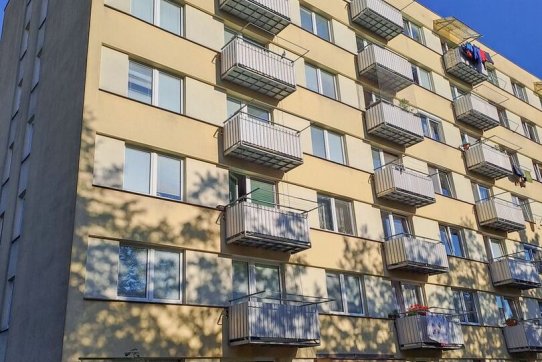 Byt o celkové podlahové ploše 39 m2 (včetně balkonu 2,25 m2 a sklepa 1m2) se nachází v sedmém nadzemním podlaží (6.patře) panelového domu s výtahem a je orientován na západ.