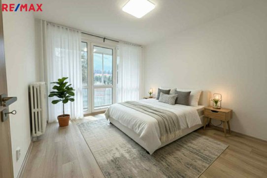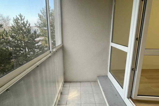 Dispozice bytu zahrnuje vstupní chodbu, ložnici se zasklenou lodžií, obývací pokoj s kuchyňským koutem a koupelnu s vanou. Byt je vhodný pro jednotlivce nebo pár, kteří hledají dlouhodobý pronájem.