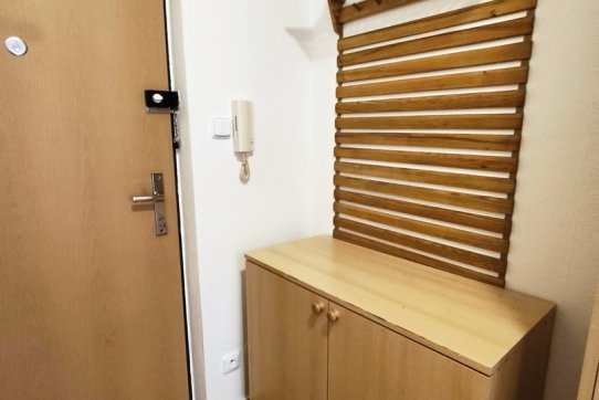 V chodbě jsou vestavěné skříně, komoda/botník a předsíňová stěna.