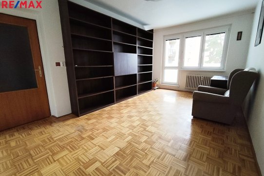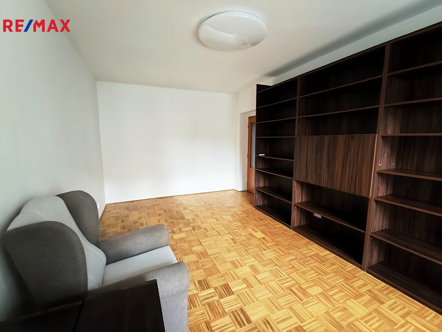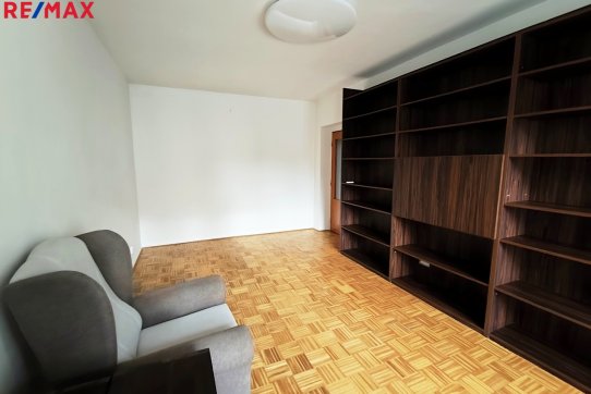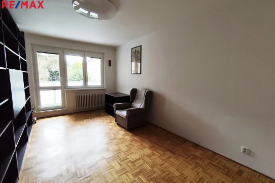 V obývacím pokoji je umístěna obývací stěna (kterou je možno vystěhovat dle přání nájemce) a samostatné křeslo.
