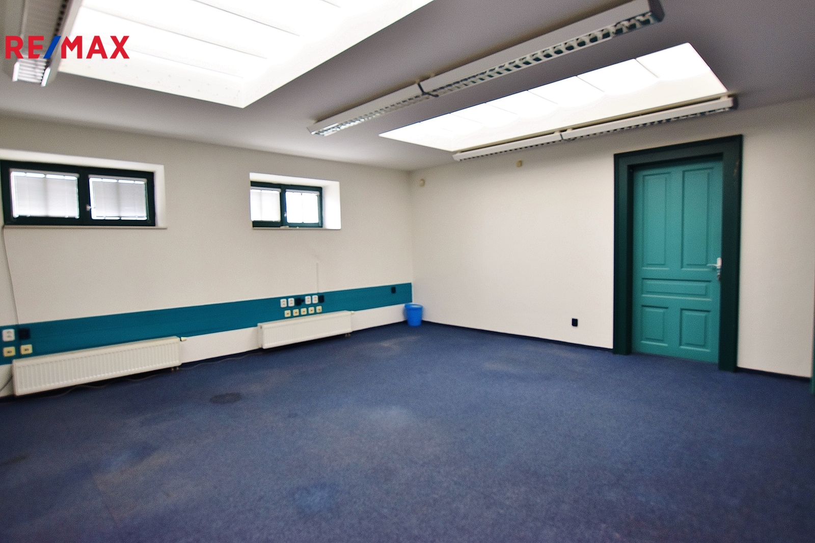 Nabízíme k pronájmu kancelář o velikosti 38,4 m² v 5. nadzemním podlaží administrativní budovy, která se nachází v centru města České Budějovice, konkrétně v historické a zrekonstruované budově v ulici Dr. Stejskala. Objekt je postaven z kvalitní cihly a stav jeho konstrukce i vnitřních prostor je velmi dobrý, což zajišťuje příjemné pracovní prostředí.