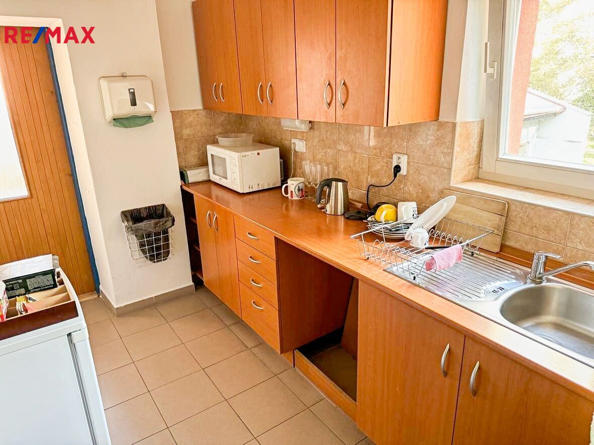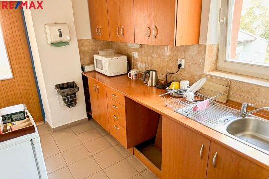 Kancelářská budova je po rekonstrukci, v I.NP je recepce, za domem je parkování. K dispozici je kuchyňka, sprcha, dámské a pánské toalety