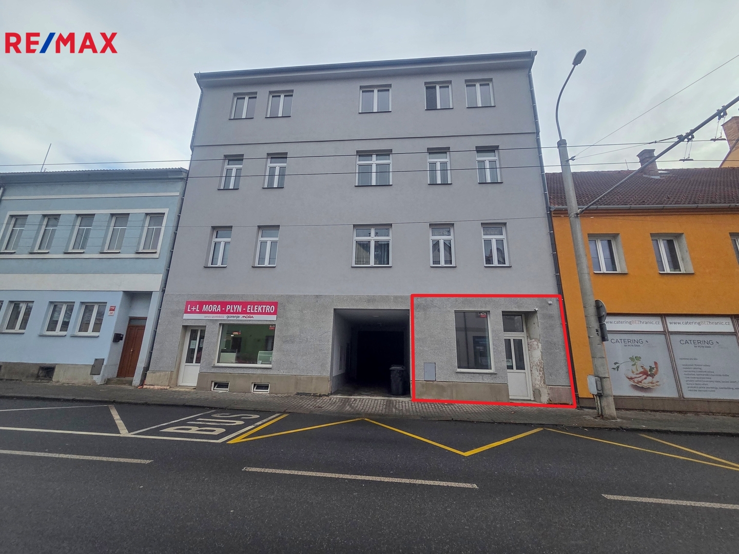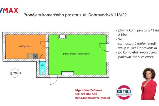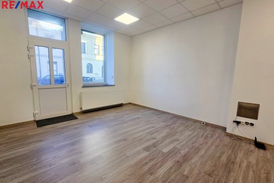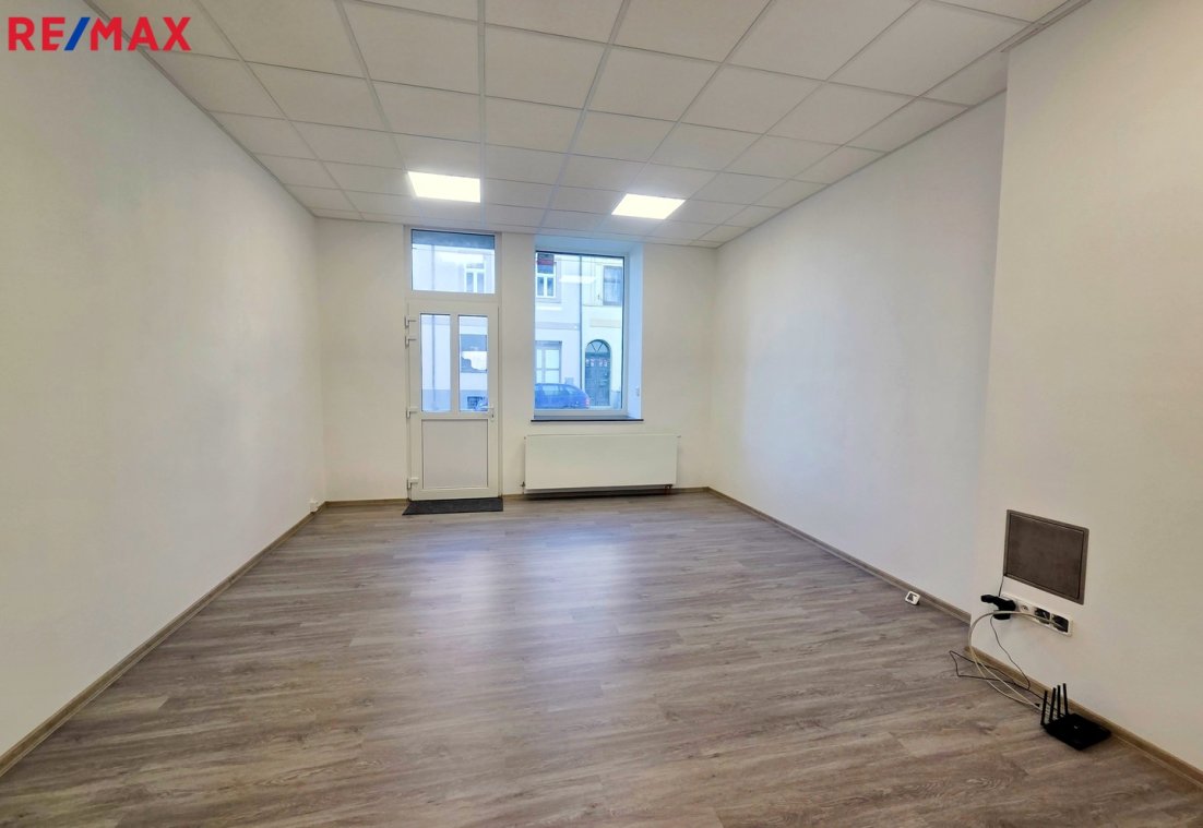 Přední (hlavní) prostor o velikosti 28 m2 má vstup přímo z ulice a výkladní skříň. Zadní část prostoru má plochu 12 m2.