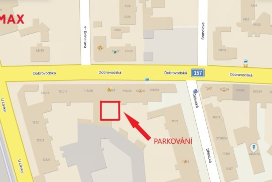 Jedno parkovací místo je v ceně pronájmu. Parkoviště se nachází na soukromém pozemku, za garážovými vraty.