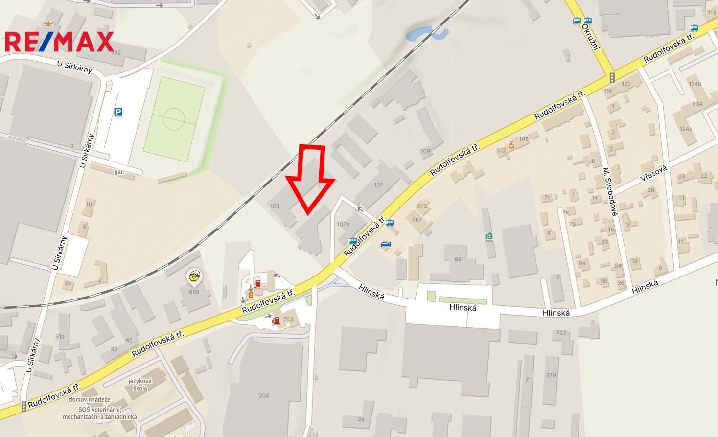 Areál se nachází v lokalitě s dobrou dopravní dostupností a strategickým napojením na obchodně – průmyslovou část krajského města (Rudolfovská ulice, Hlinská ulice, Okružní ulice s přímým napojením na dálnici D3), zároveň v místě s komplexní vybaveností (přístup pro osobní dopravu i nákladní transfer (24/7), nákladové rampy, nákladní výtahy, možná obslužnost vysokozdvižnými vozíky, čerpací stanice PHM v areálu).