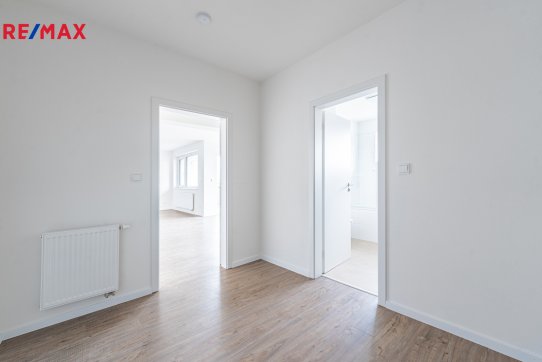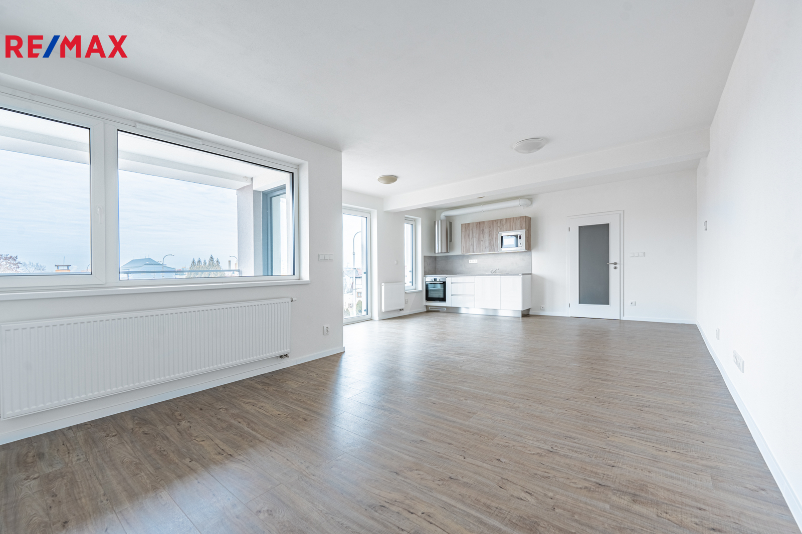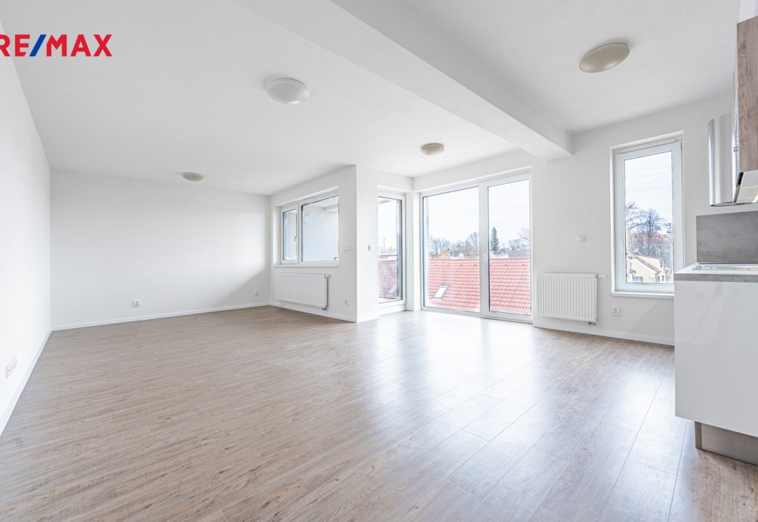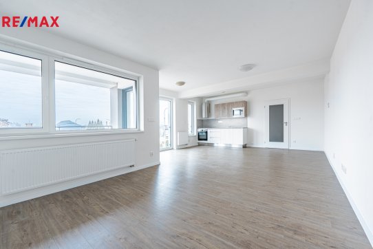 Byt disponuje opravdu velkým obývacím pokojem s praktickým kuchyňským koutem. Kuchyňská linka je včetně vestavěných spotřebičů (mikrovlnná trouba, horkovzdušná trouba, sklokeramická deska, digestoř). V zadní části obýváku je prostor pro manželskou postel, který se dá jednoduše oddělit nábytkem od zbytku mísnosti a vytvořit tak velmi útulnou a klidnou ložnici.