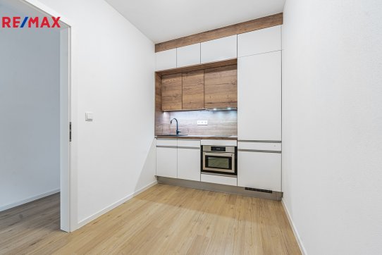 Byt se skládá z předsíně, obývacího pokoje, ložnice, koupelny a kuchyně. Kuchyně je prostorná, takže se zde pohodlně usadíte i u velkého jídelního stolu. Nabízí moderní kuchyňskou linkou s vestavěnými spotřebiči (mikrovlnná/horkovzdušná trouba, myčka, sklokeramická deska, digestoř, lednice). Díky tomu, že je kuchyně oddělená, umožnuje pohodlné vaření a zároveň nenarušuje klid v obou dvou místnostech. Koupelna je v příjemných barvách. Je zde sprchový kout, WC, umyvadlo a prostor pro pračku.