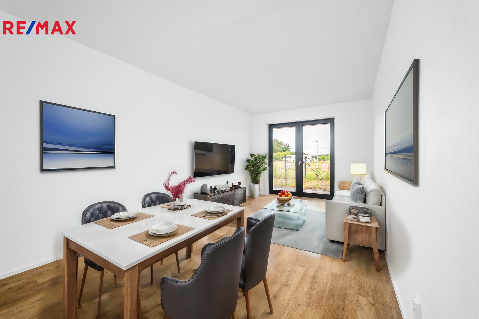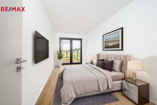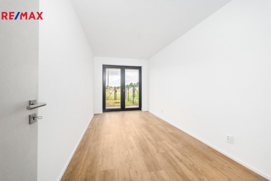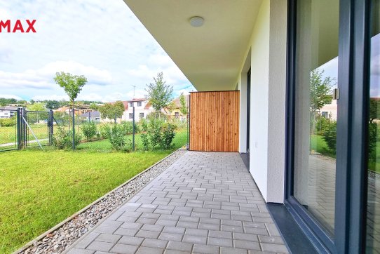 Všude jsou francouzská okna, která do bytu pouští dostatek světla. Byt je tím krásně světlý a slunný. Vchod na terasu a zahradu je z obýváku i ložnice.