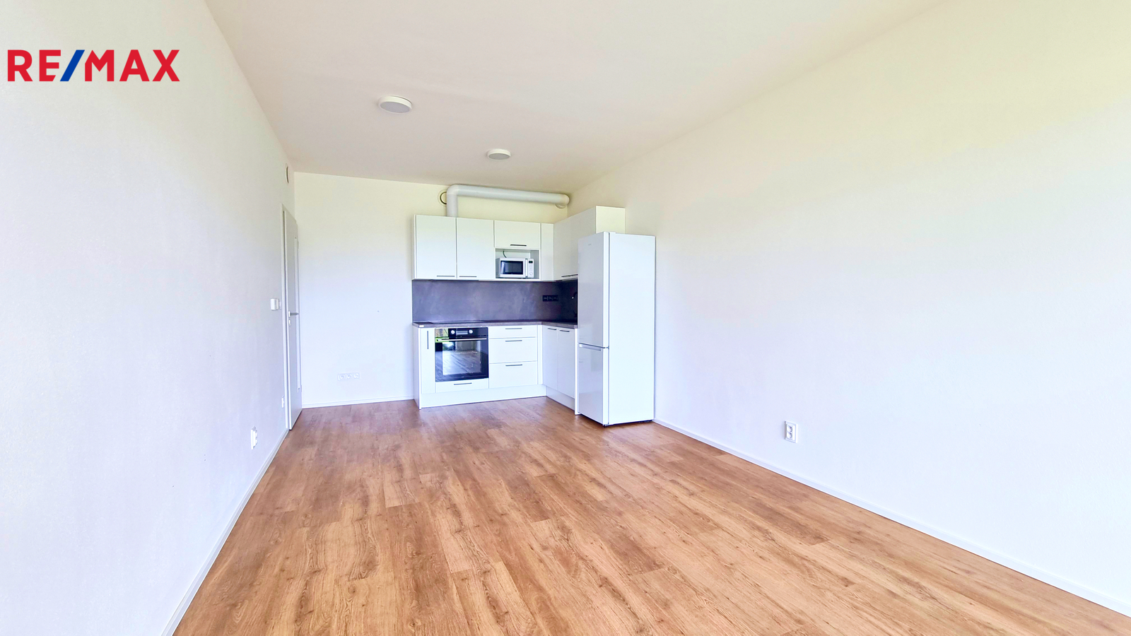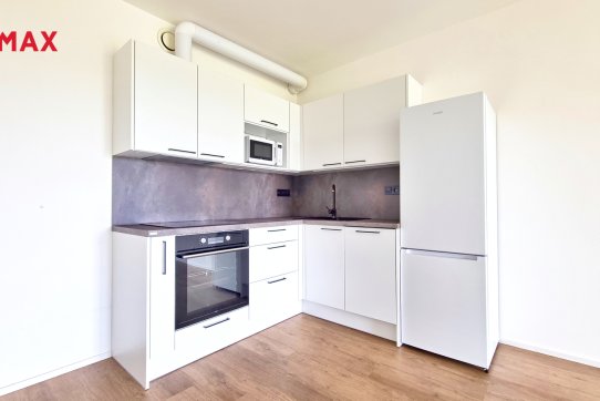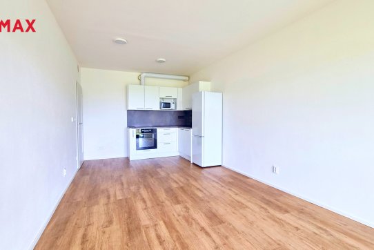 Byt disponuje prostorným obývacím pokojem s kuchyňským koutem. Kuchyňská linka je plně vybavena spotřebiči (sporák, digestoř, horkovzdušná trouba, mikrovlnná trouba, myčka, lednice).