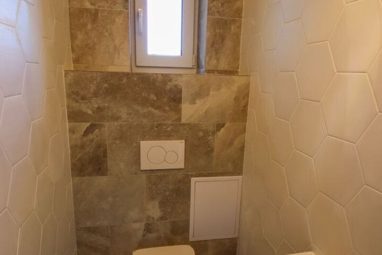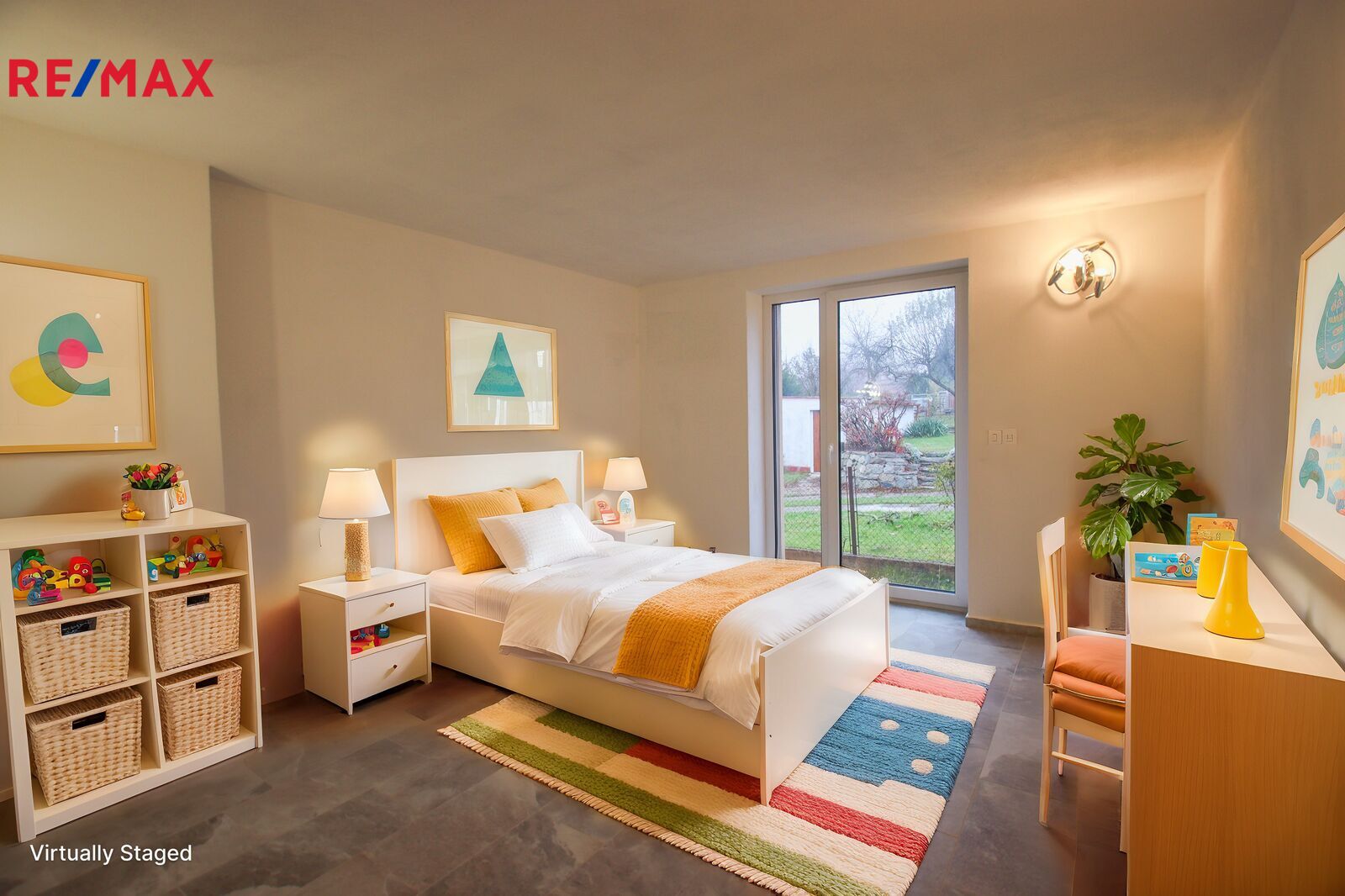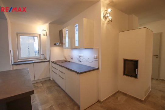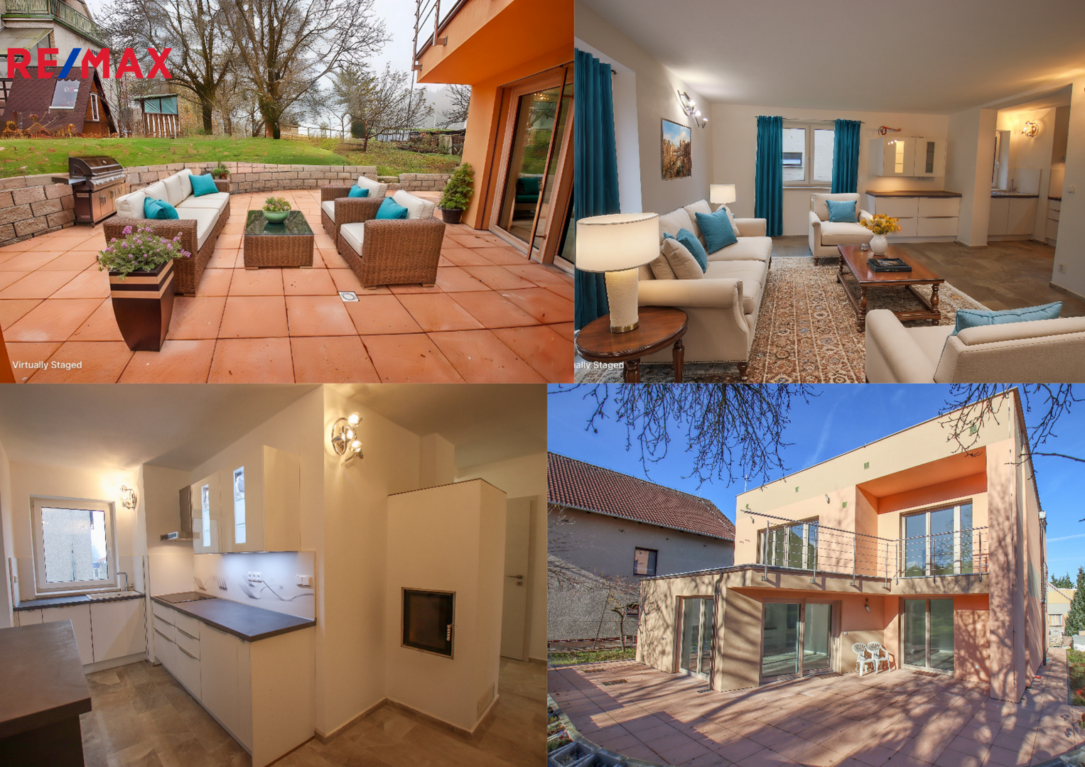 Byt o dispozici 4+1, velikosti 103 m2 + terasa (plocha 35 m2) se nachází v 1. NP (přízemí) rodinného domu, který je vybaven klimatizací, předokenními žaluziemi, krbem, zabezpečovacím a požárním systémem.