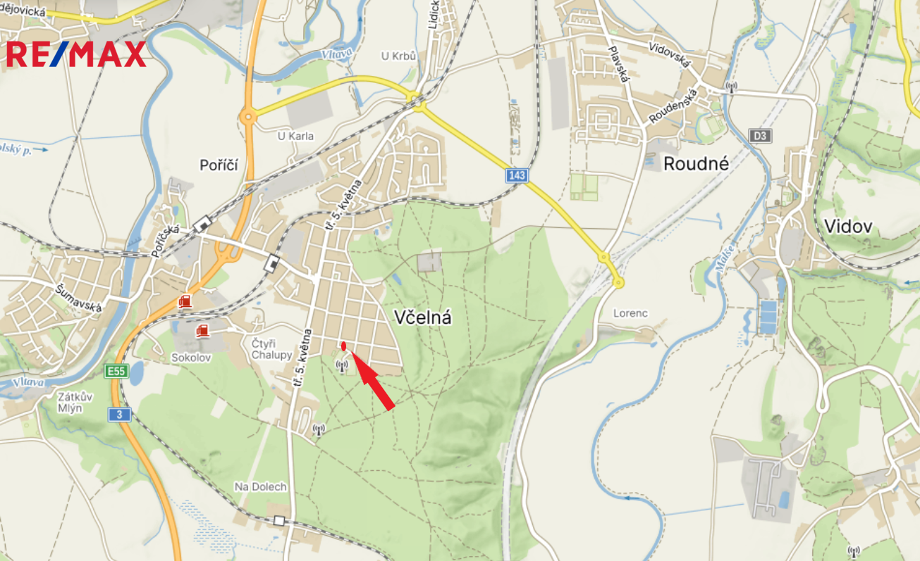 Autobusová zastávka ve vzdálenosti cca 250 m.
