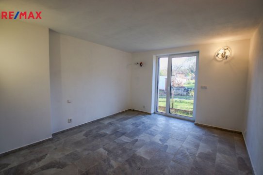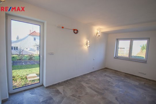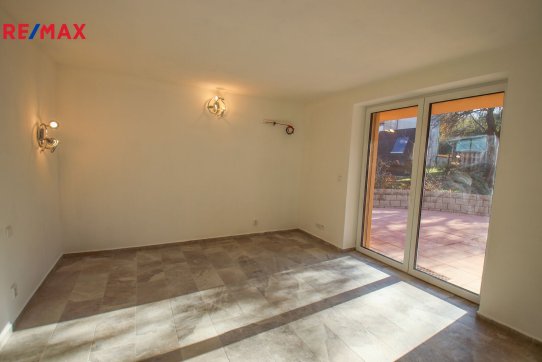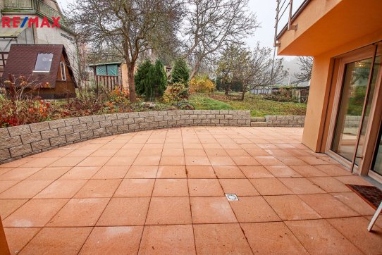 Terasa (35 m2, orientována do zahrady) je přístupná z obývacího pokoje i z ložnice.