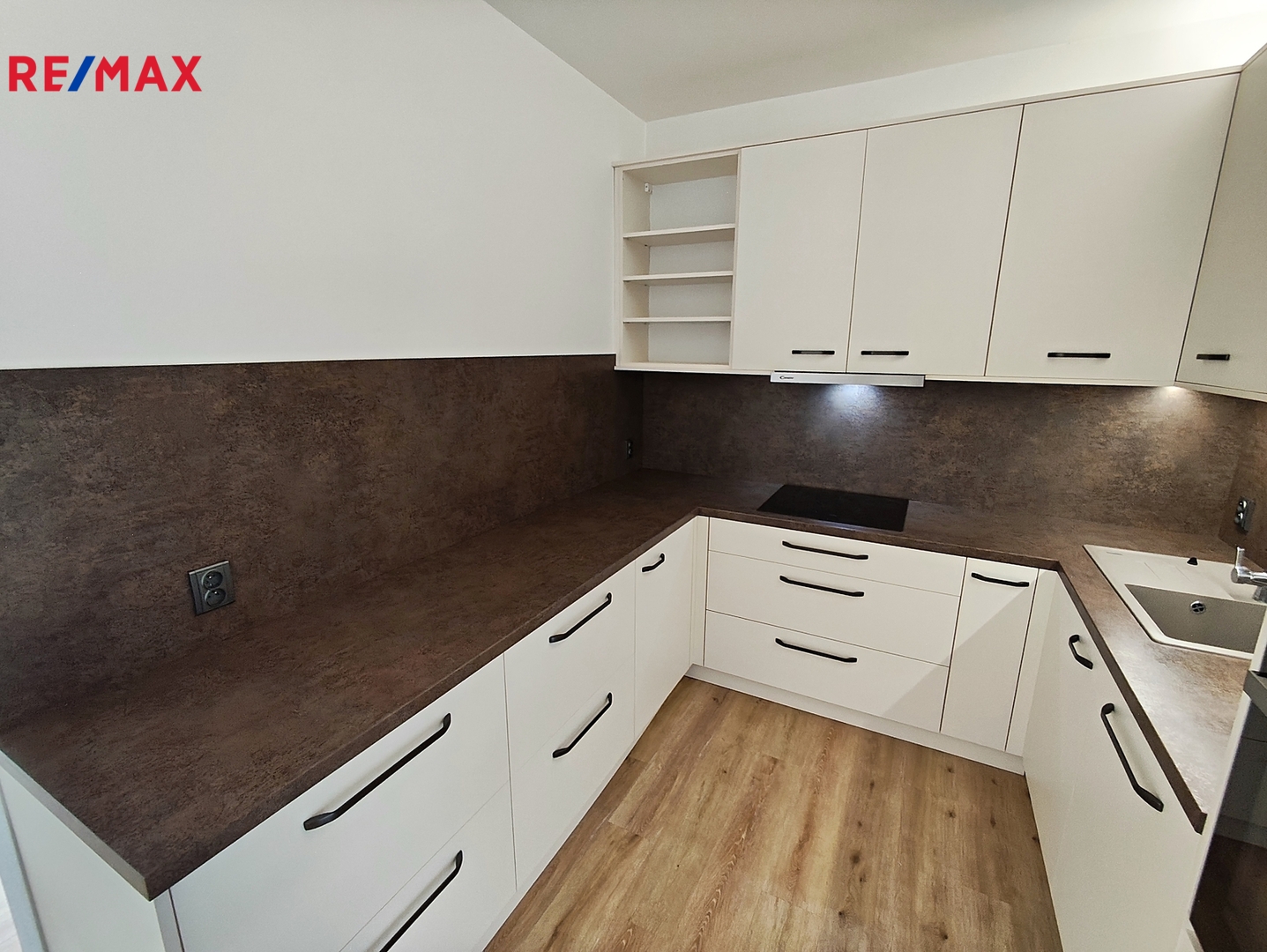 V celém bytě jsou položeny vinylové podlahy a instalováno kompletní osvětlení.