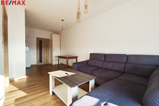 Byt se skládá z hlavní obytné místnosti s kuchyňským koutem, která je vybavena kuchyňskou linkou se spotřebiči – multifunkční el. troubou, sklokeramickou varnou deskou, myčkou, digestoří a lednicí s mrazákem. Součástí obytné části je sedací souprava, konferenční stolek a jídelní stůl.