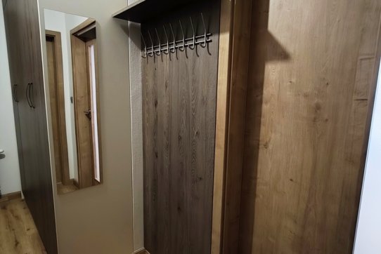 V předsíni je umístěna soustava šatních skříní, předsíňová stěna a botník, které poskytují dostatek úložného prostoru.
