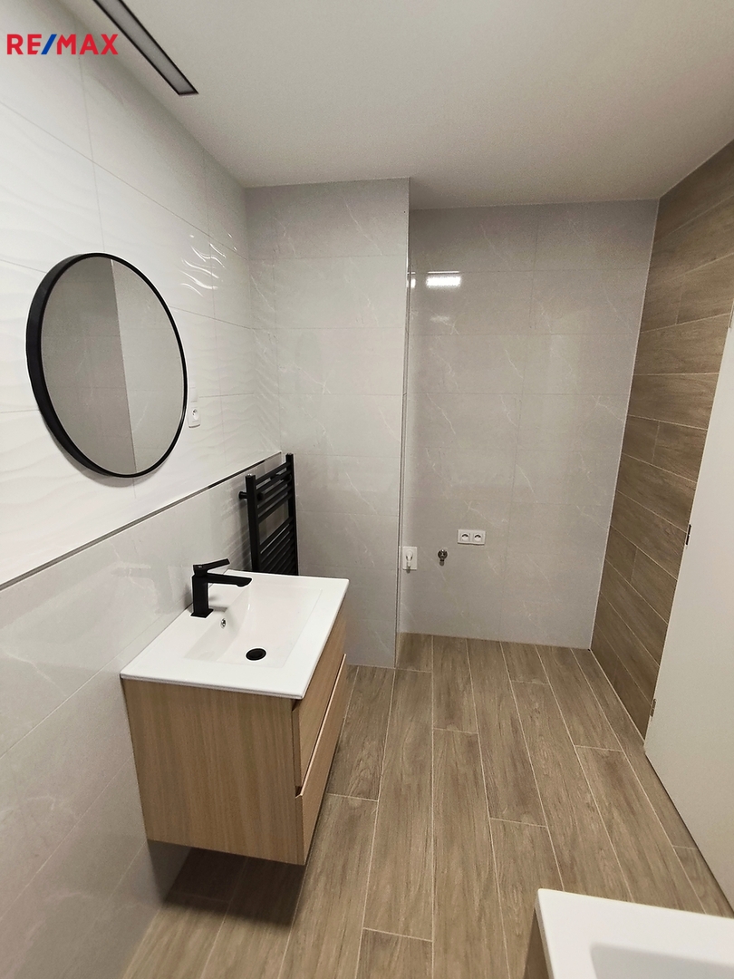 Byt je novostavba, úplně nový, částečně vybavený, v luxusním provedení, s důrazem na moderní design a kvalitní materiály.