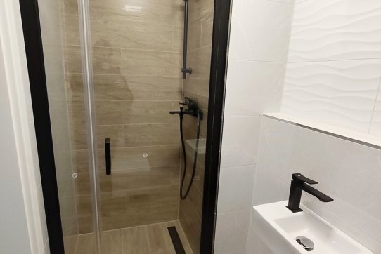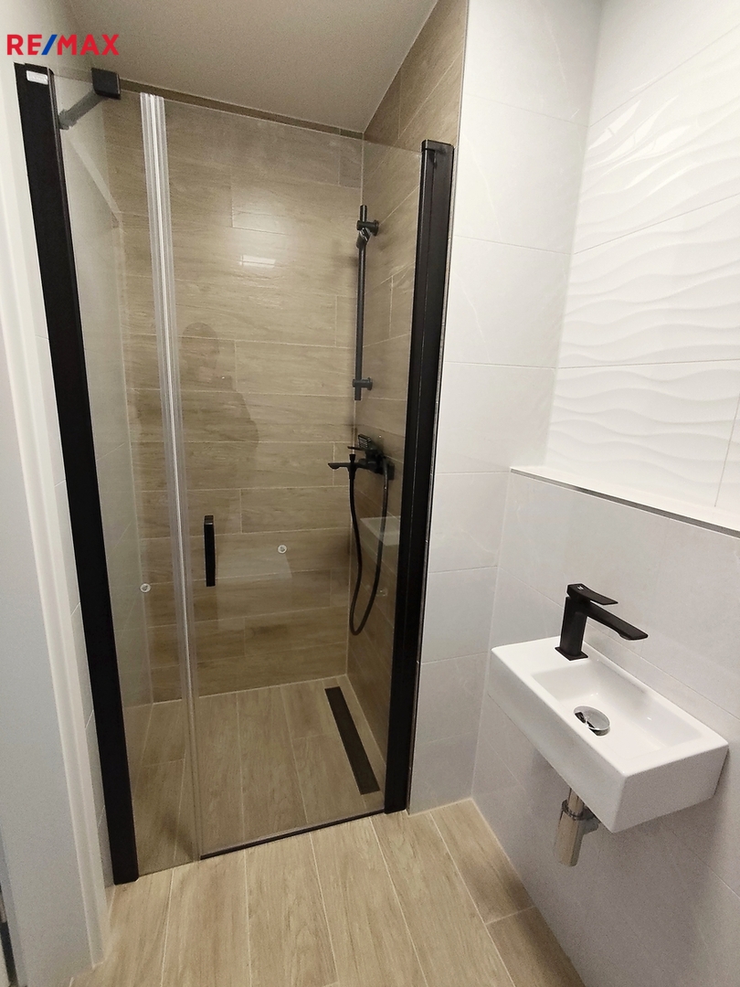 V celém bytě jsou položeny vinylové podlahy, kromě soc. zařízení, kde je položena keramická dlažba. Ve všech oknech jsou osazeny elektrické venkovní žaluzie. Dále jsou také v celém bytě osazeny kvalitní, designové interiérové dveře s obložkami a stropní LED svítidla.
