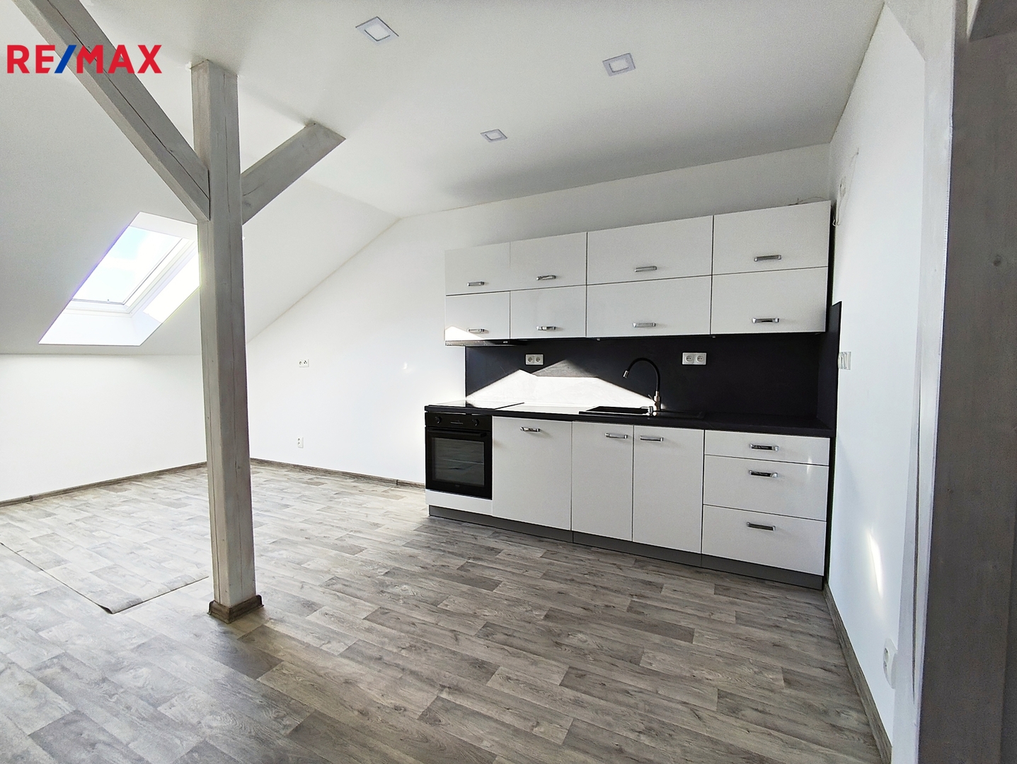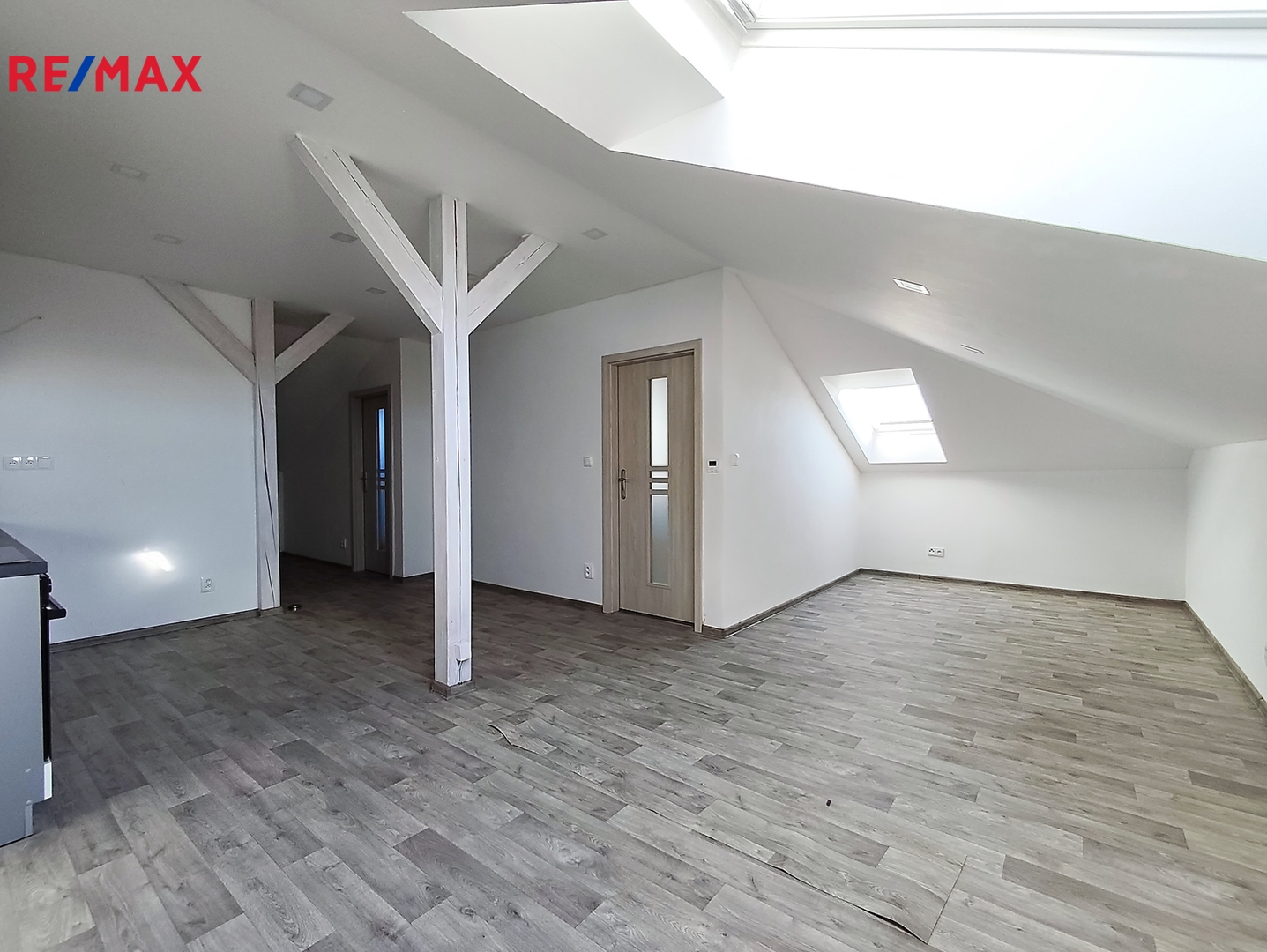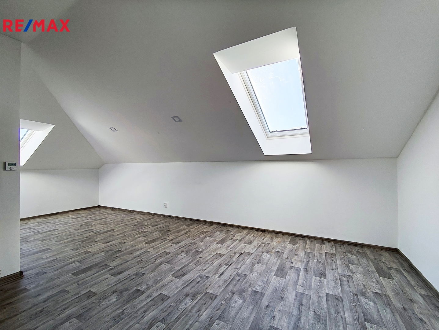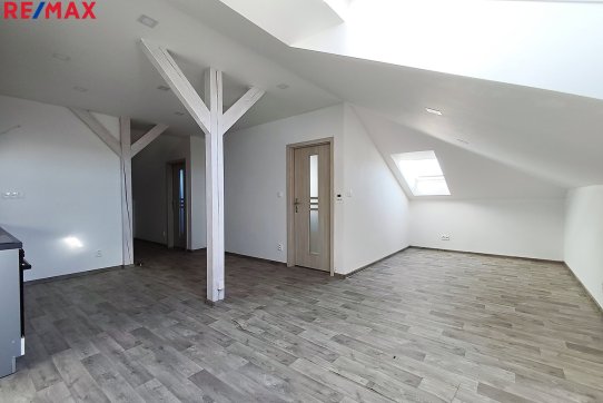 Nabízím k pronájmu podkrovní byt 2+kk o výměře 59 m², umístěný v podkroví rodinného domu, v ulici Průmyslová, Kamenný Újezd.