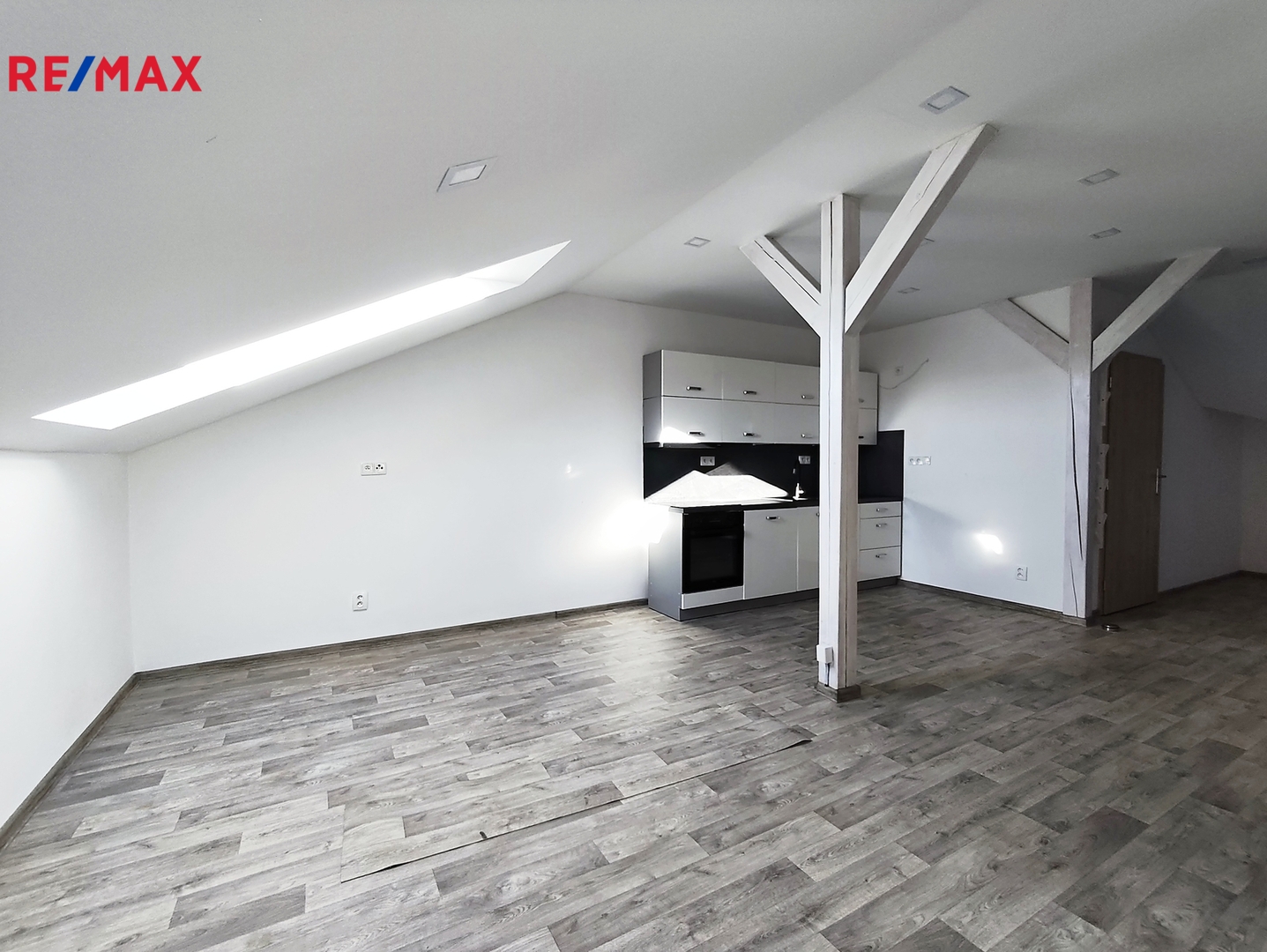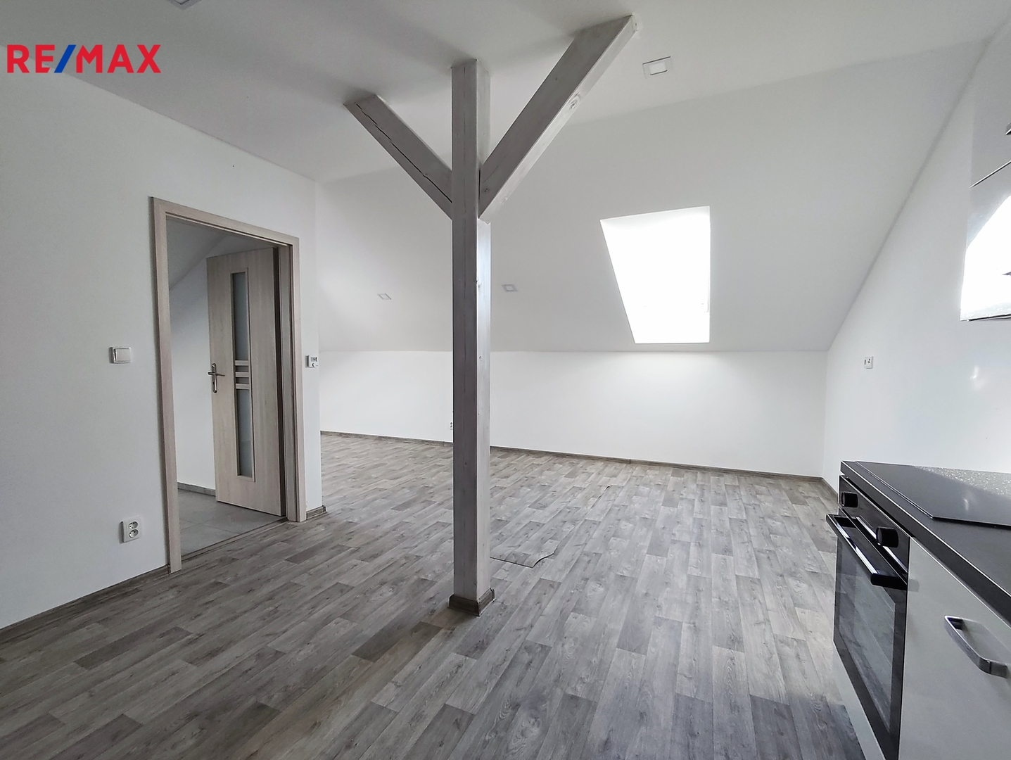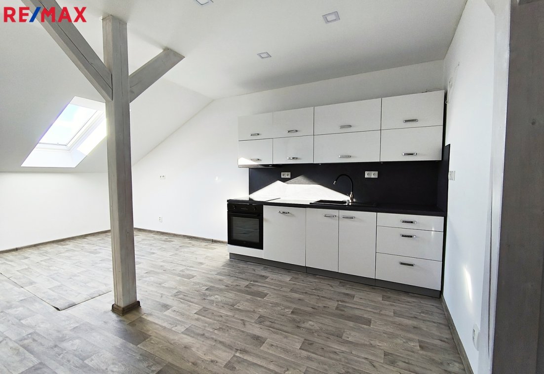 Nabízím k pronájmu podkrovní byt 2+kk o výměře 59 m², umístěný v podkroví rodinného domu, v ulici Průmyslová, Kamenný Újezd.