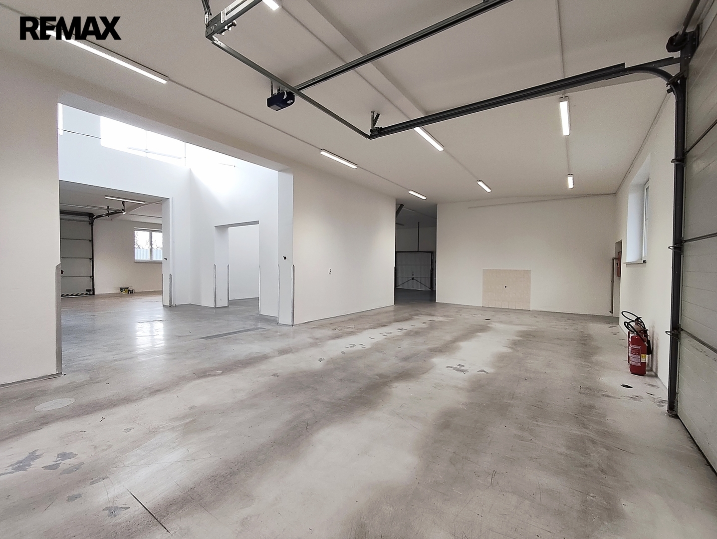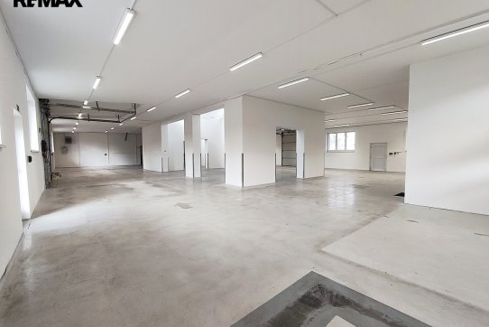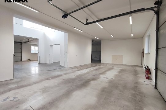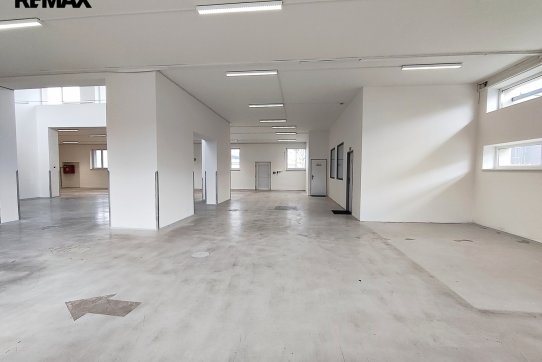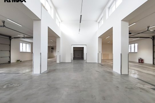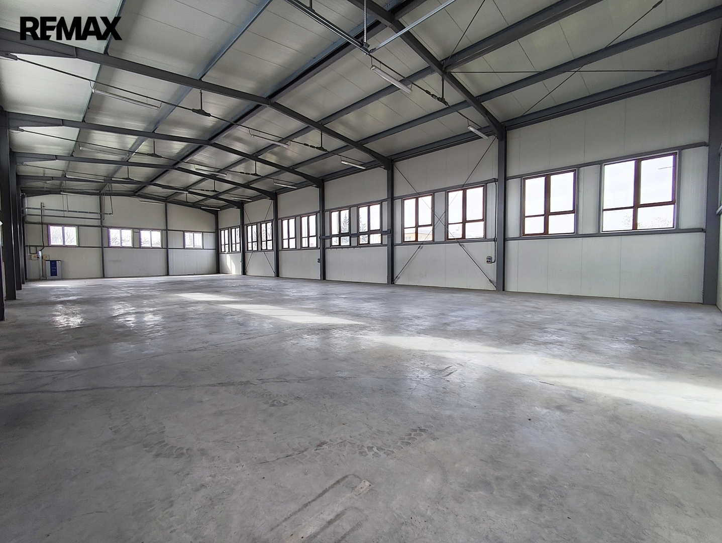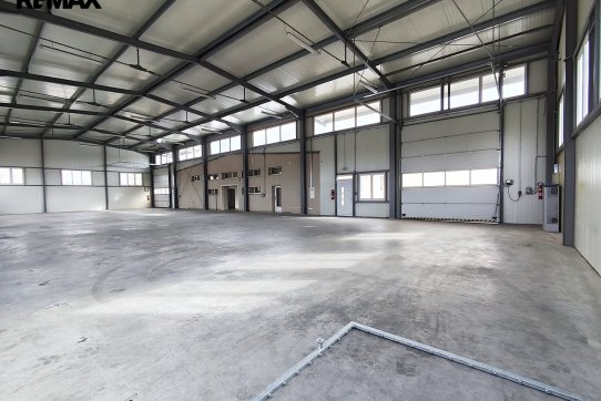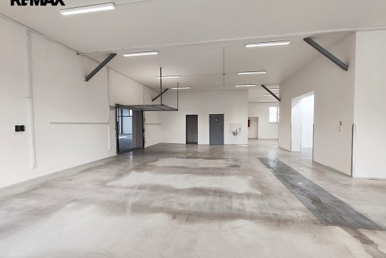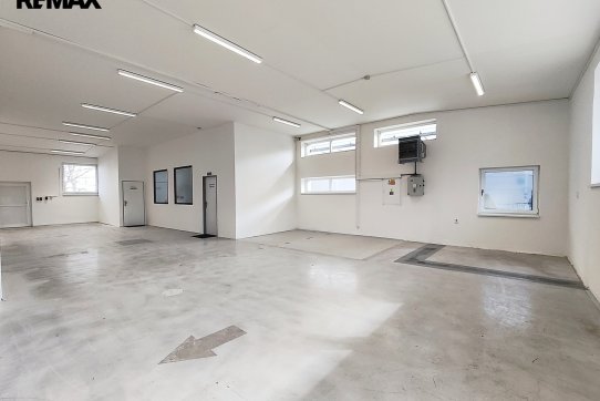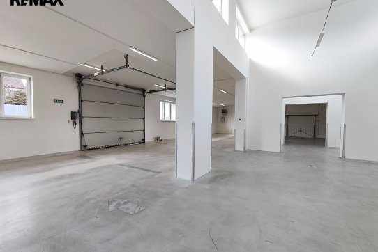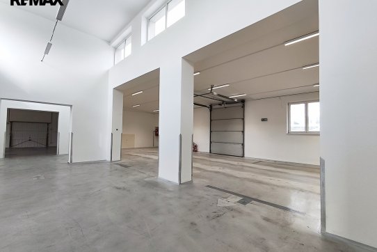 Zděná hala o výměře cca 520m2 je tvořena velkým prostorem, výrobním či prodejním, se středovými příčkami. Zvlášť je oddělena kancelář, sociální zařízení, úklidová místnost a kuchyňka. Vstup do haly je řešen z úrovně terénu - vjezd pro zásobování (rolovací průmyslová vrata) + vstupní dveře a dále z rampy – také rolovací průmyslová vrata a vstupní dveře. Další vstup je z čela budovy dveřmi do kanceláře a další sklopná vrata spojují tuto budovu s vedlejší ocelovou halou. Podlahová krytina je betonová stěrka s nátěrem. Okna a dveře v plastu. Vytápění elektrické.