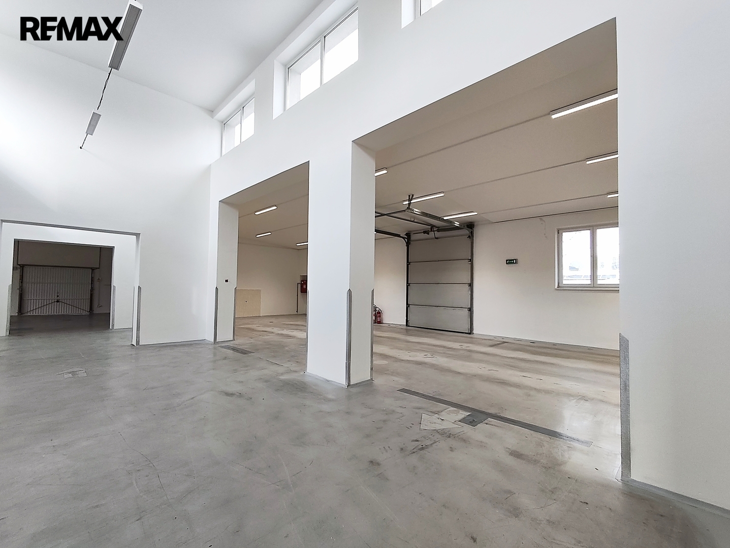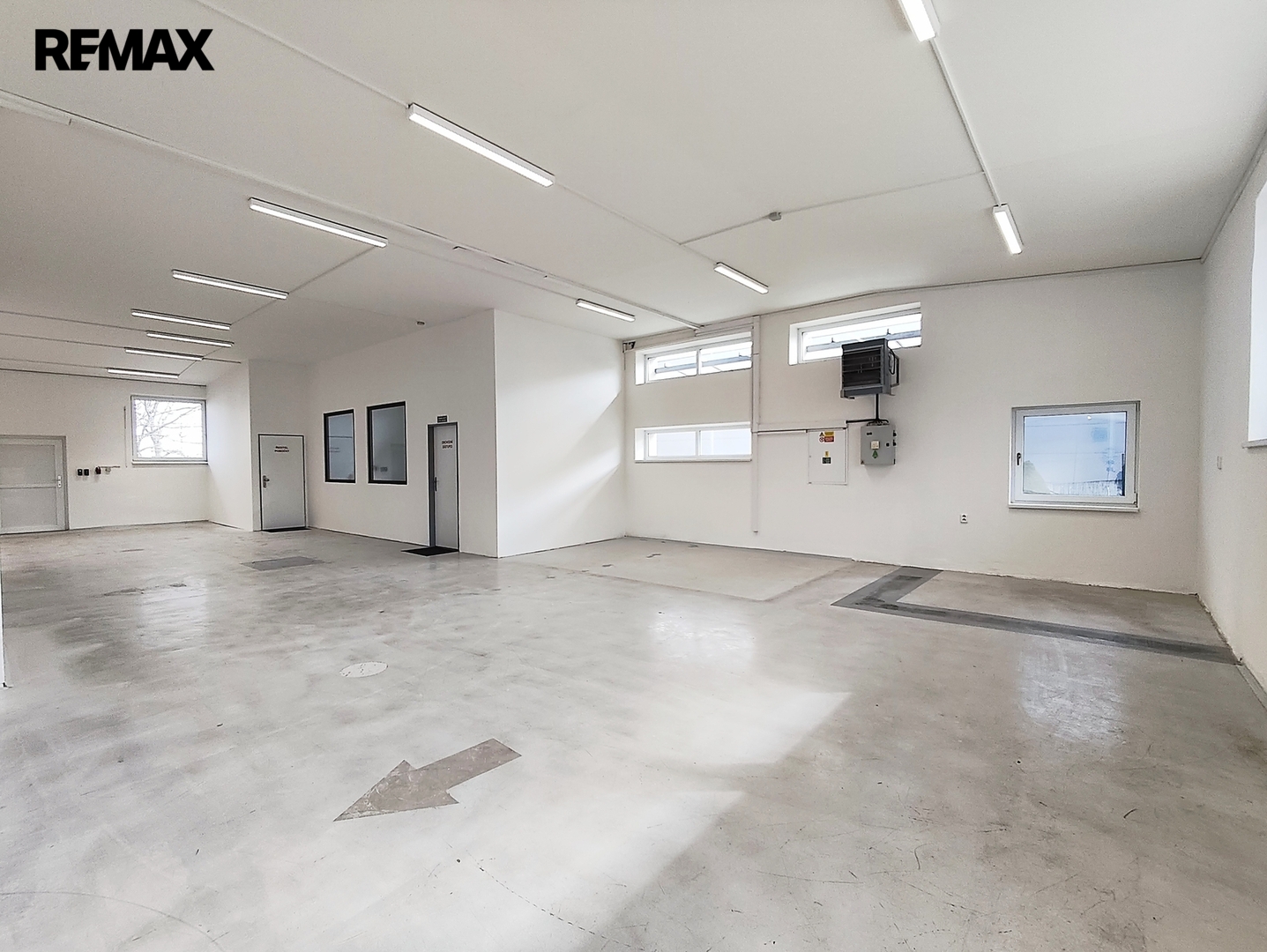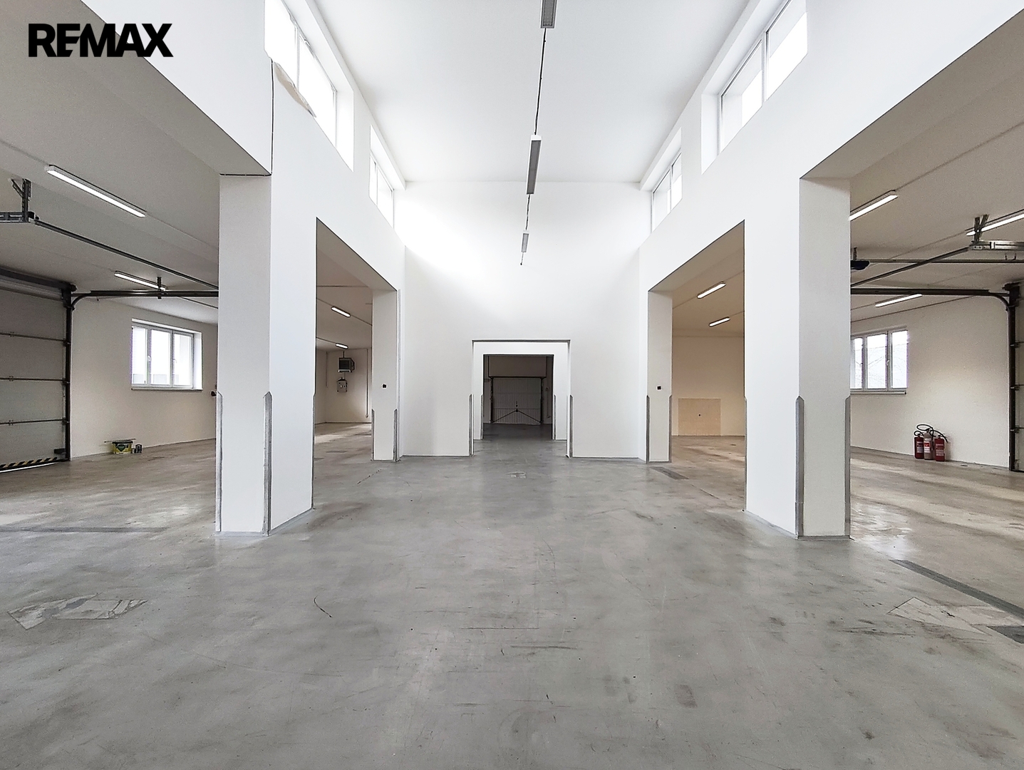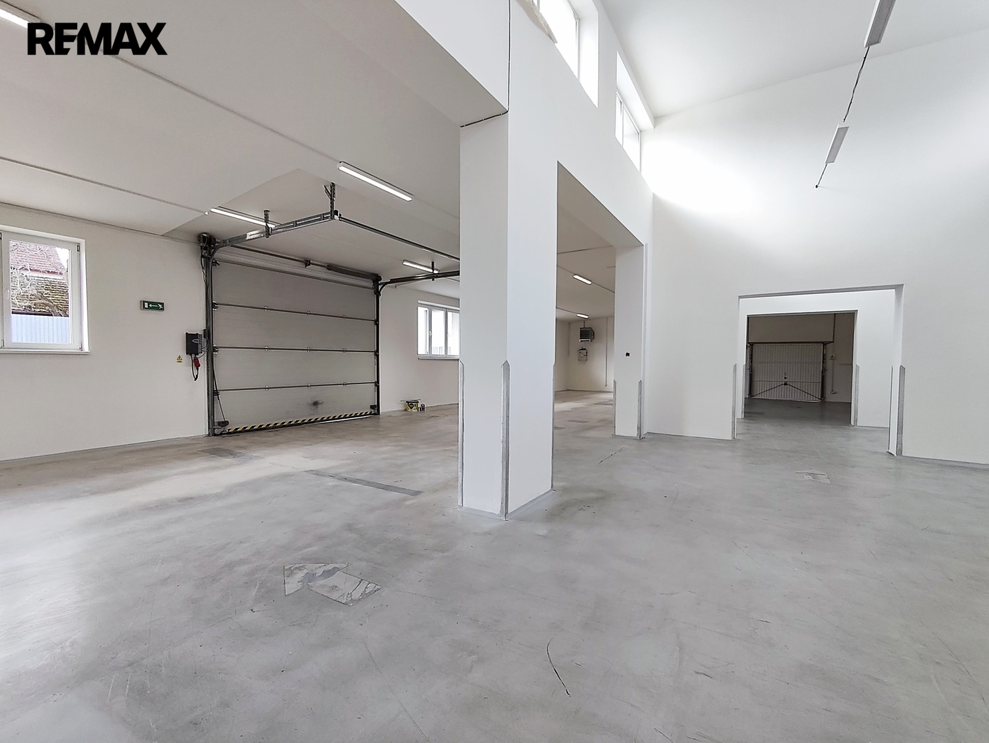 Zděná hala o výměře cca 520m2 je tvořena velkým prostorem, výrobním či prodejním, se středovými příčkami. Zvlášť je oddělena kancelář, sociální zařízení, úklidová místnost a kuchyňka. Vstup do haly je řešen z úrovně terénu - vjezd pro zásobování (rolovací průmyslová vrata) + vstupní dveře a dále z rampy – také rolovací průmyslová vrata a vstupní dveře. Další vstup je z čela budovy dveřmi do kanceláře a další sklopná vrata spojují tuto budovu s vedlejší ocelovou halou. Podlahová krytina je betonová stěrka s nátěrem. Okna a dveře v plastu. Vytápění elektrické.