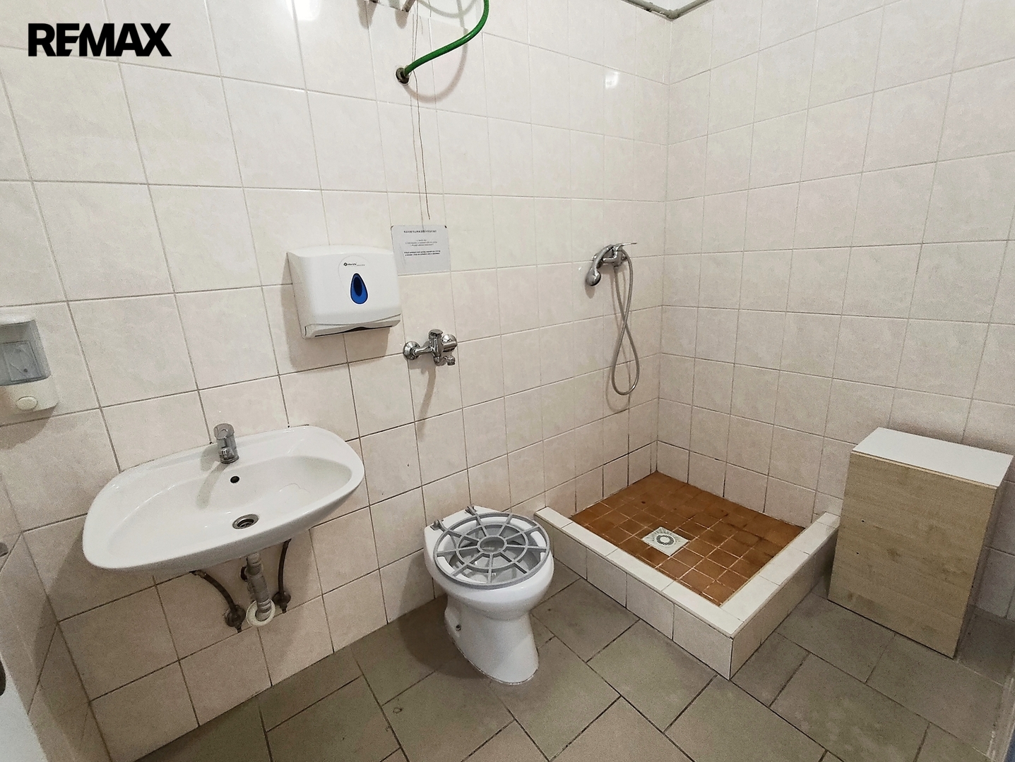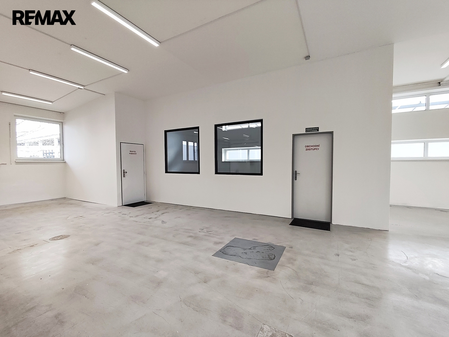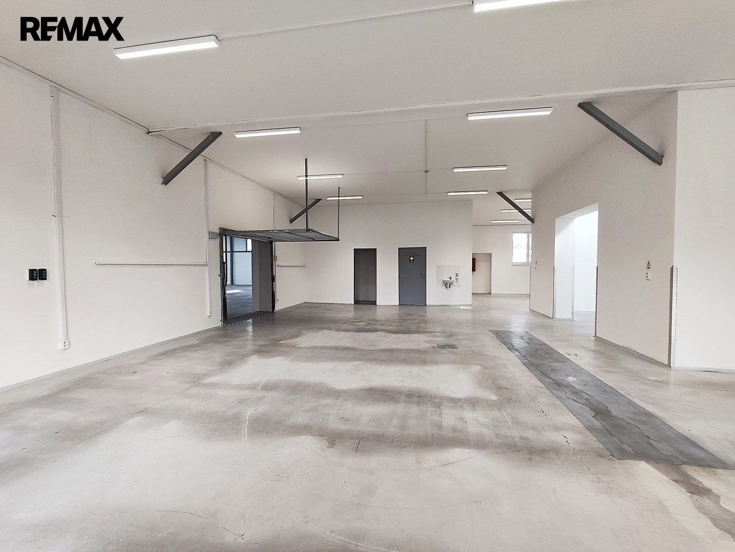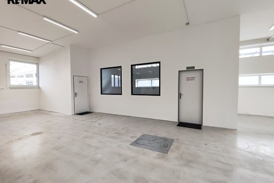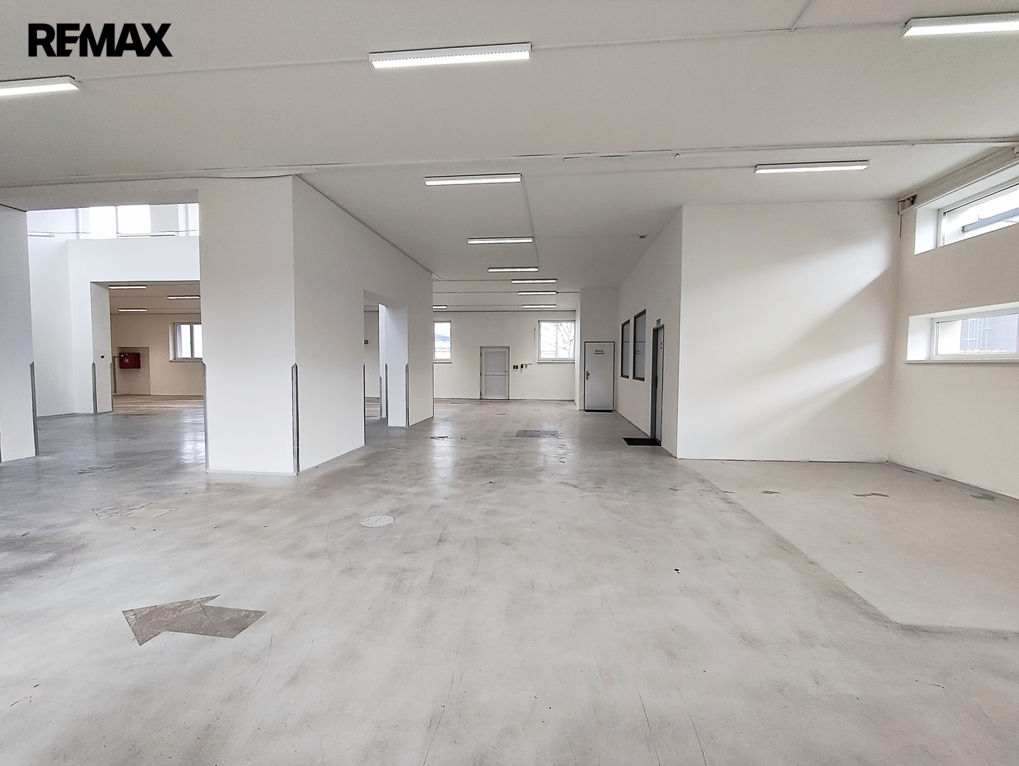 Zděná hala o výměře cca 520m2 je tvořena velkým prostorem, výrobním či prodejním, se středovými příčkami. Zvlášť je oddělena kancelář, sociální zařízení, úklidová místnost a kuchyňka. Vstup do haly je řešen z úrovně terénu - vjezd pro zásobování (rolovací průmyslová vrata) + vstupní dveře a dále z rampy – také rolovací průmyslová vrata a vstupní dveře. Další vstup je z čela budovy dveřmi do kanceláře a další sklopná vrata spojují tuto budovu s vedlejší ocelovou halou. Podlahová krytina je betonová stěrka s nátěrem. Okna a dveře v plastu. Vytápění elektrické.