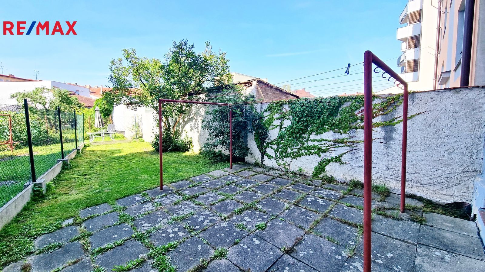 K bytu náleží malý kumbál v mezipatře a velký sklep v suterénu domu. Využít můžete také společnou zahrádku, kde se dá relaxovat nebo třeba sušit prádlo.