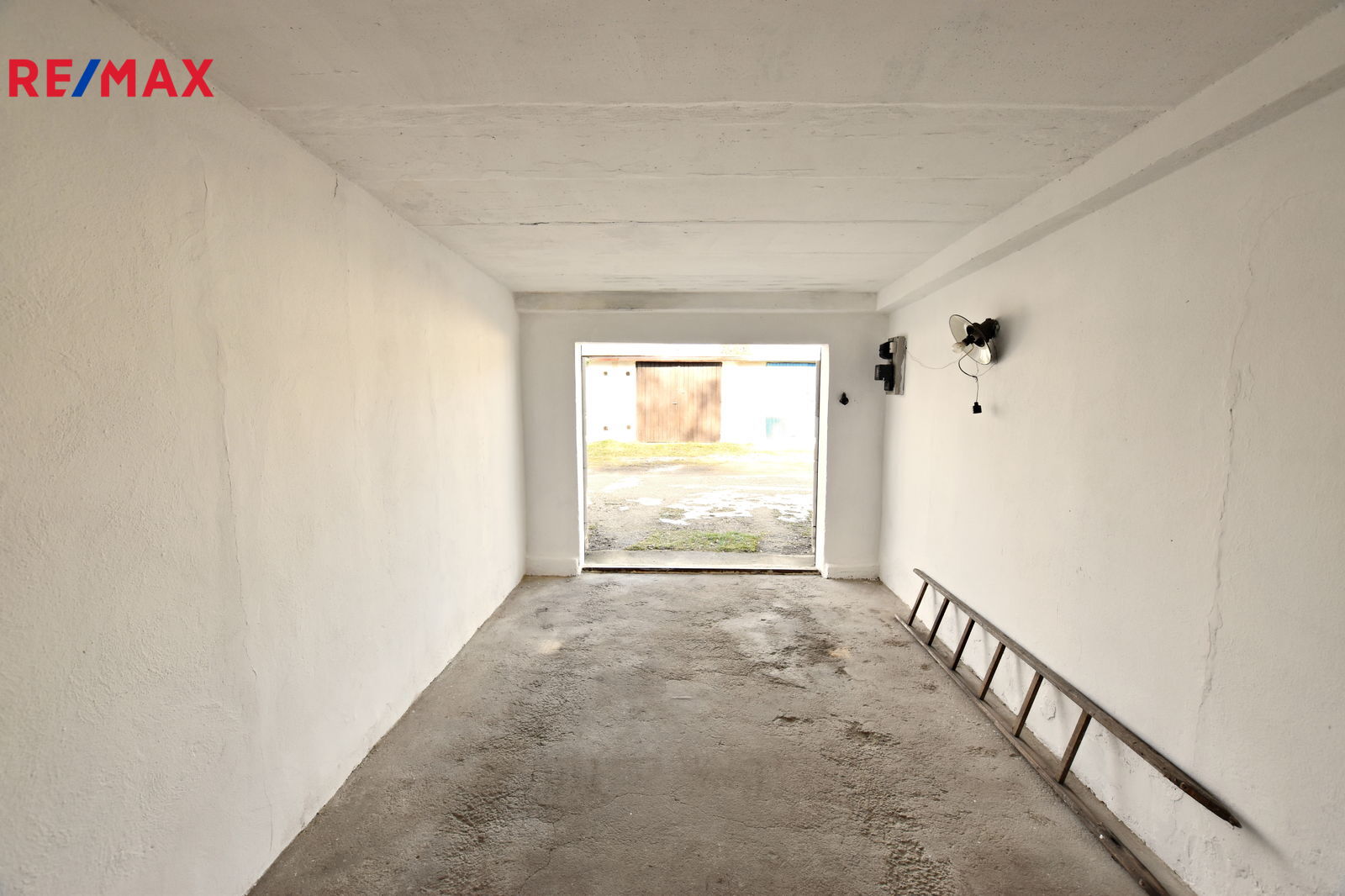 Čistá, suchá a udržovaná garáž má betonovou podlahu a je vybavena osvětlovacím tělesem, zásuvkou na 230 V a má samostatný (podružný) elektroměr. Dvoukřídlá garážová vrata jsou zabezpečena FAB zámkem a přídavným visacím zámkem.